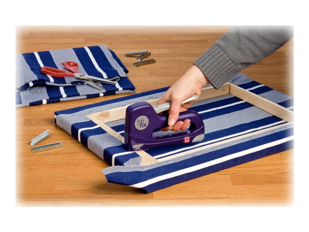 Diese leichte, einfach zu bedienende Klammerpistole eignet sich perfekt für einfachere Aufgaben im Haushalt und wurde für Benutzer mit kleineren Händen entwickelt. Sie eignet sich perfekt für Aufgaben wie das Polstern von Möbeln und dekorative Arbeiten mit verschiedenen Arten von Stoffen oder Textilien - Für Feingewindeklammern Nr. 53, 4-8 mm - Enthält ein Starterset mit Klammern - 2 Jahre Garantie