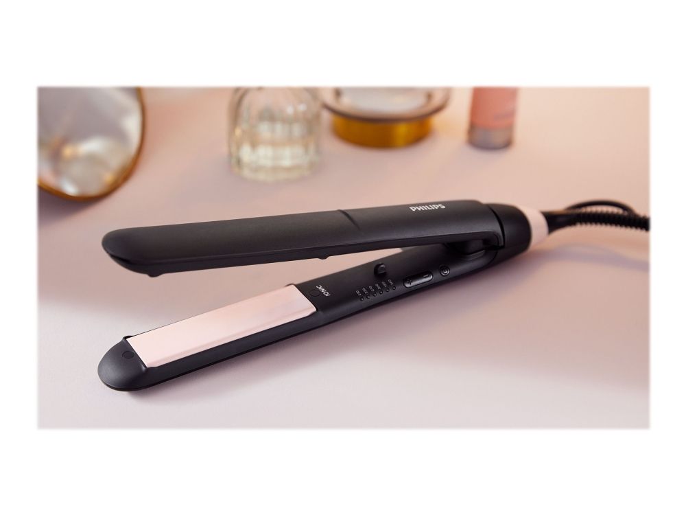 Specially designed for easy and fast styling with long Keratin-infused plates and 6LED temperature settings. Care for your hair with ThermoProtect technologypreventing overheating and to give your hair vibrant shine with ions.