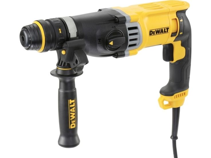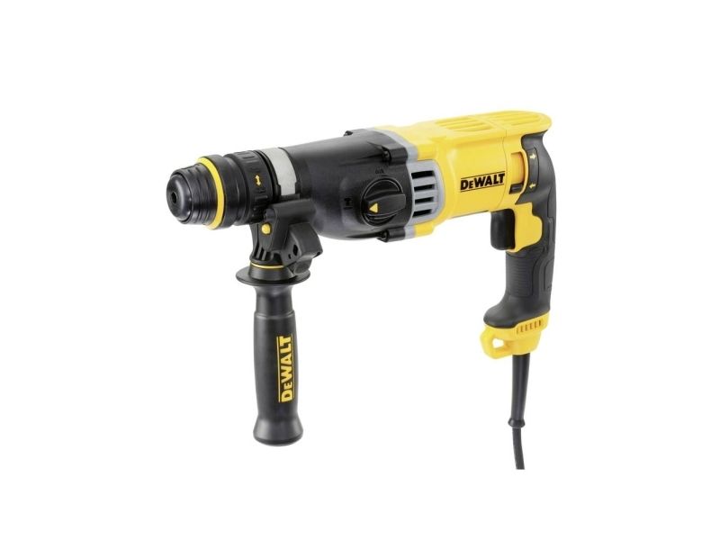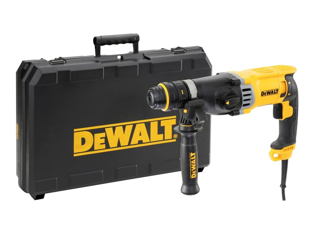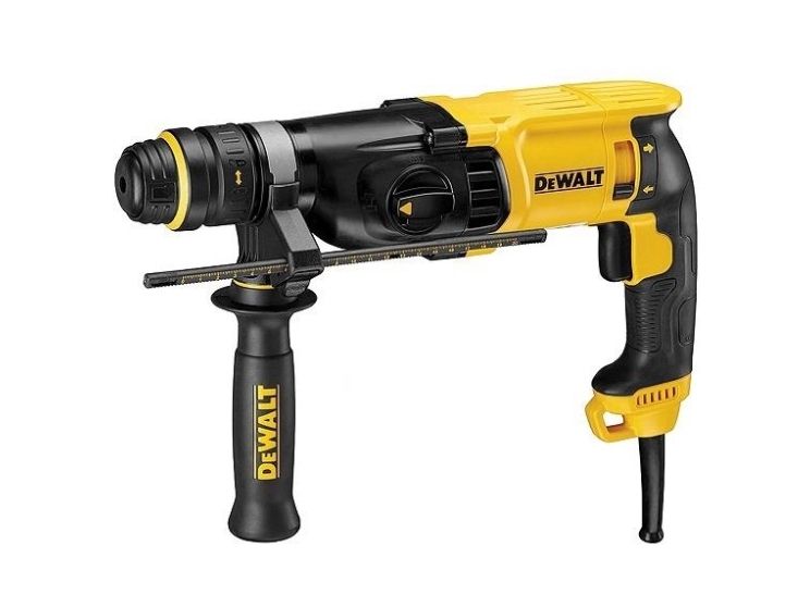 - Ideal for drilling anchor and fixing holes into concrete and masonry from 4 to 28 mm in diameter - Rotation-stop for light chiselling applications in brick, soft masonry and occasionally concrete - Quick Change Removable Chuck for drilling in wood, steel, ceramic and screwdriving applications - Impact-stop for drilling in wood, steel, ceramic and screwdriving applications - Large hammer mechanism delivers high performance with low stress to the critical components resulting in better durability - Mechanical clutch eliminates sudden high-torque reaction should the bit jam - Electronic variable speed for total control in any application - Ergonomic rubber coated back handle design for improved comfort in use - Rubber coated side handle to improve user comfort - Rounded ergonomic industrial design allows easy and comfortable handling in any application - Improved sealing for maximum protection from dust ingress ensuring long tool life - Output air slots designed to protect users‘ eye