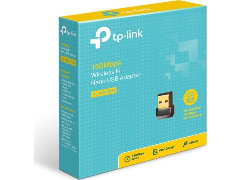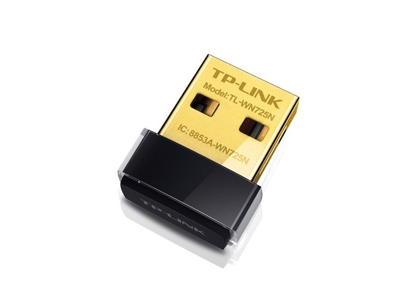 TP-LINK's 150 Mbps wireless N nano USB adapter, TL-WN725N allows users to connect a desktop or notebook computer to a wireless network at 150 Mbps. This miniature adapter is designed to be as convenient as possible and once connected to a computer's USB port, can be left there, whether traveling or at home. It also features advanced wireless encryption and easy installation.