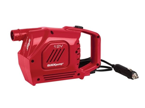 The 12V QuickPump™ has both Double Lock™ valve and pinch valve adapters to inflate beach toys and other inflatables.