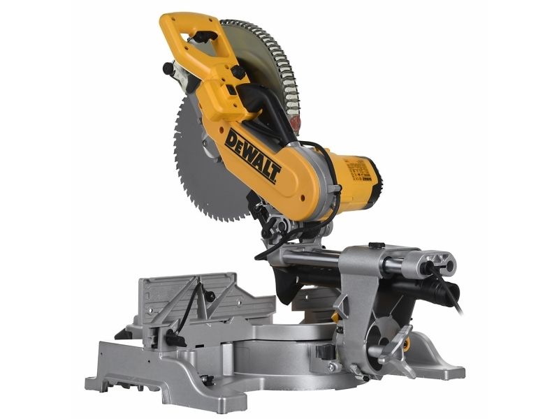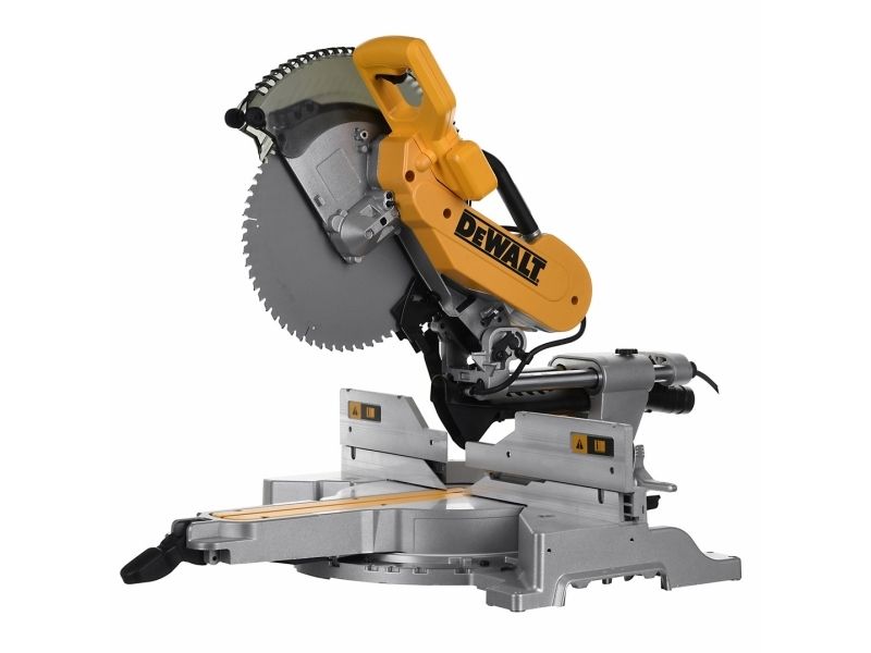 DeWALT DWS780. Idle speed (max): 3800 RPM. Power source: AC, Input power: 1675 W. Depth: 470 mm, Height: 396 mm, Weight: 24.8 kg. Blade diameter: 30.5 cm, Blade bore: 3 cm. Cutting capacity 45° mitre: 212 x 76 mm