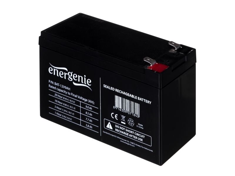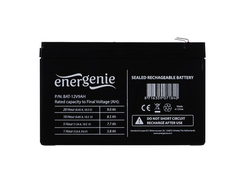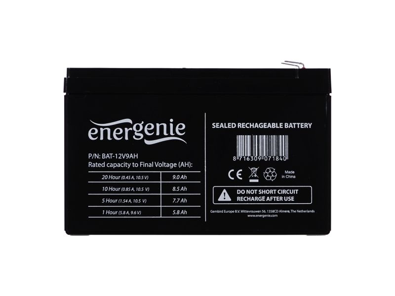 Gembird 12V, 9 Ah, Plombierte Bleisäure (VRLA), 12 V, 9 Ah, 1 Stück(e), Schwarz, 2,57 kg