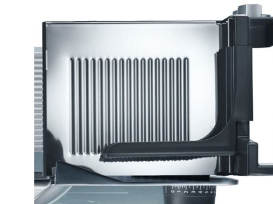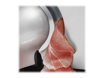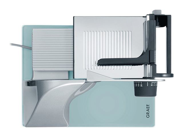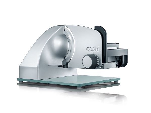 - Allround-Allesschneider für die anspruchsvolle Küche. - Leistungsstarker, flüsterleiser Motor. - Schlittenschaltung mit Moment- und Dauerfunktion. - Glattes Vollstahlmesser. - Ideal für hauchdünnen Schnitt. - Ausstattung: Kabelfach. - Austattung: Schlitten mit Edelstahlauflage, Schnittstärkeneinstellung: 0 - 20mm, Massive, bruchsichere Glasbodenplatte, Schlittenschaltung mit Moment- und Dauerfunktion, Abnehmbare Messerabdeckplatte aus Edelstahl, Kindersicherung durch Einschaltsicherung. - Bauart: Vollmetallausführung, freitragend - Lieferumfang: Restehalter, Kunststofftablett. - Messer: Ø 170mm, glattes, durchgehärtetes Vollstahlmesser mit Hohlschliff für hauchdünne Scheiben - Motor: Flüsterleiser 170 Watt Kondensatormotor, wartungsfrei.