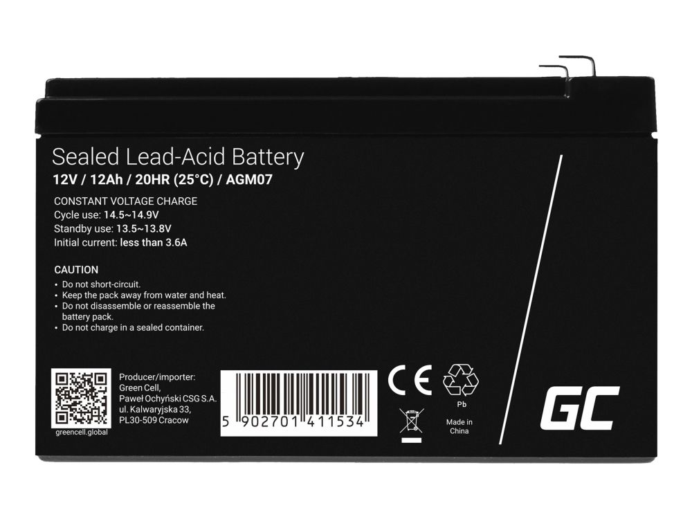 Green Cell AGM accumulator is made from high-quality materials. The device is perfect to be used heavily, but also to be used from time to time. The accumulator is based on AGM technology, which means that the electrolyte is absorbed by a fiberglass separator, preventing its leakage. This way the device can work in different positions, not just vertically. This is a perfect and much safer alternative for lead-acid accumulators.