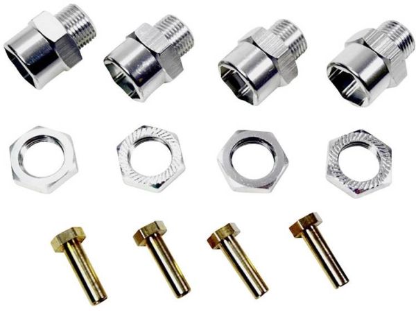 Aluminium-Radadadapter 12 mm auf 17 mm +15 mm VerlängerungRäder mit 17 mm Radaufnahme können mit diesem Adapter auf Modelle im Maßstab 1:10 montiert werden.