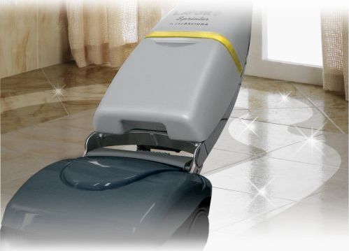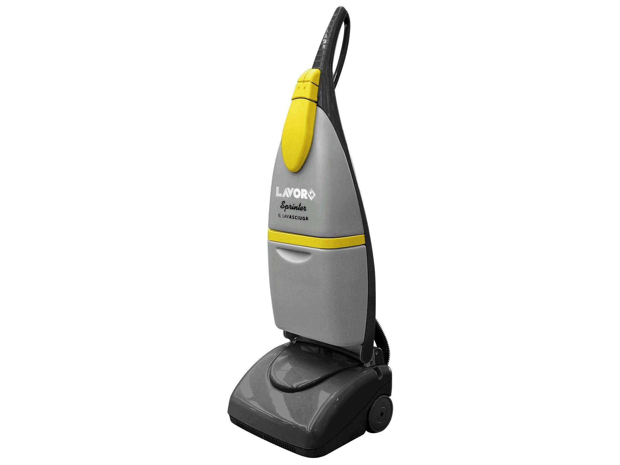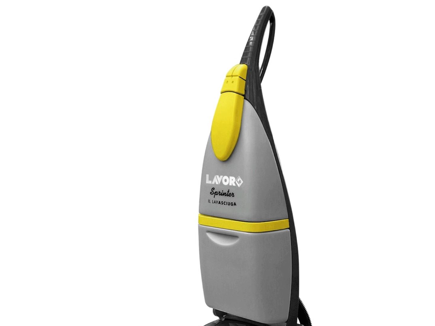 The ?oor scrubber drier Sprinter IL LAVASCIUGA washes and dries in one touch. Thanks to Sprinter IL LAVASCIUGA, it is ?nally possible to wash deeply and dry any kind of rigid ?oor in public places, shops, of?ces and it is recommended for the house, too. Sprinter IL LAVASCIUGA grants high performances for every type of application. It washes and dries in both forward and reverse, it is immediately ready to use: in fact, it doesn’t need long preparation times before working; it is practical and simple to use, thanks to its three independent and ergonomical controls, for the brush, for washing, for drying. The vacuum system works even with the handle parallel to the ?oor: the machine can wash and dry for its entire length below structures that are 25 cm above the ?oor;