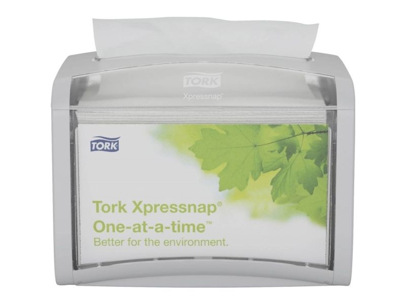 Der Tork Xpressnap® Tischspender ist ideal für Restaurants mit eingeschränktem Service, die Servietten am Tisch anbieten. Dieser kompakte und moderne Spender liefert Servietten in Einzelausgabe, verbessert die Hygiene und reduziert den Serviettenverbrauch um mindestens 25 % im Vergleich zu herkömmlichen Spenderservietten-Systemen. In einer Reihe von modernen Farben erhältlich, damit Sie ihn auf Ihre Inneneinrichtung abstimmen können.