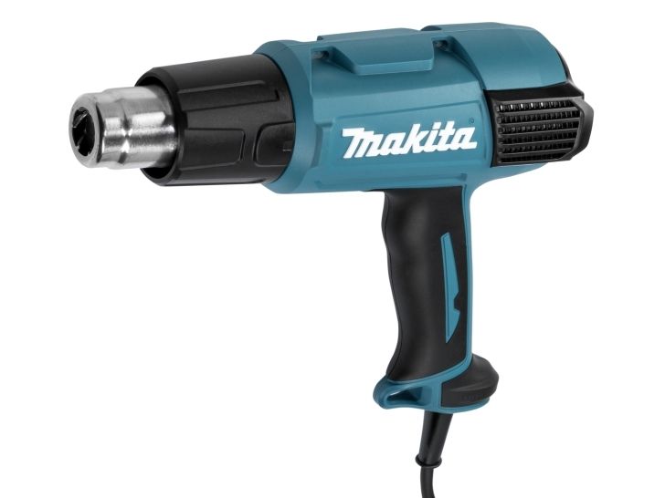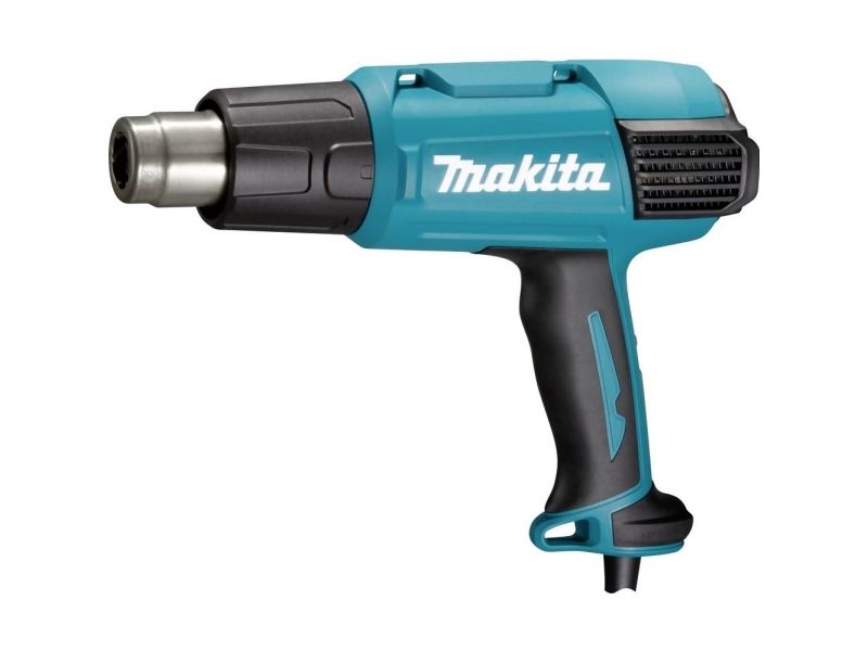 Makita HG6531CK. Product type: Hot air gun, Handle shape: Pistol handle, Product colour: Green. Maximum airflow: 550 l/min, Working temperature (max): 650 °C, Minimum airflow: 200 l/min. Input power: 2000 W. Depth: 257 mm, Weight: 710 g