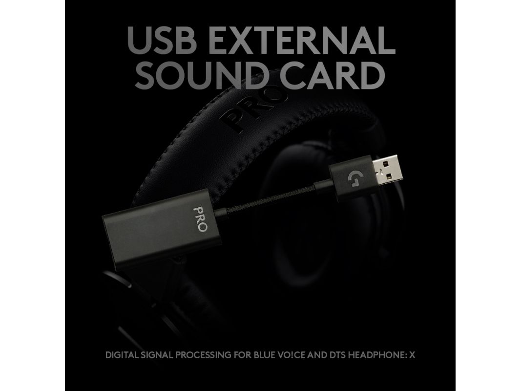 HEAR LIKE A PRO. SOUND LIKE A PRO. Hear and sound like a pro with the PRO X Gaming Headset. Blue VO!CE microphone technology* lets you communicate with greater clarity and condence. Detachable pro-grade microphone lters tune your voice in real time to sound richer, cleaner and more professional. Featuring next-gen 7.1 surround sound* and PRO-G 50-mm drivers for amazingly clear sound imaging. Soft memory foam-padded leatherette or velour earcups. Durable steel + aluminium construction. Premium USB external sound card gives you crystal-clear game sound and voice chat. Designed for tournaments with downloadable audio EQ proles tuned by your favourite esports pros. Play to win.