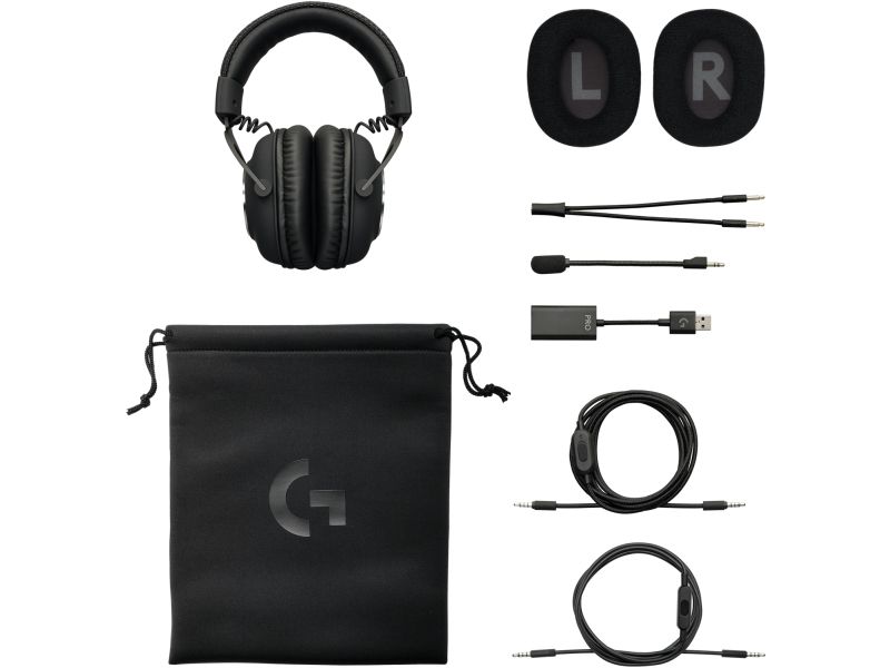 ZUBEHÖR FÜR VIELSEITIGKEIT Neben dem PC-Kabel mit Inline-Audiosteuerung wird auch ein mobiles Kabel mit Inline-Mikrofon mitgeliefert, sodass du PRO X mit abgenommenem Bügelmikrofon verwenden kannst. Eine mitgelieferte Tragetasche schützt das Headset und das Zubehör auf Reisen.