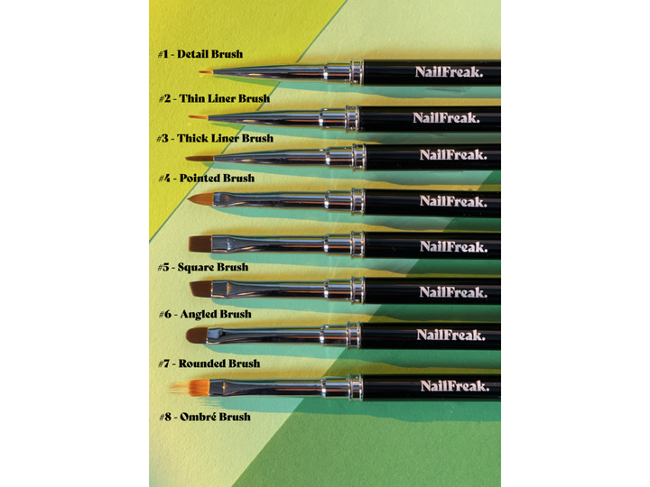 Penslerne er lavet i 100% syntetisk hår. For at passe bedst muligt på dem, anbefaler vi at du bruger en lille smule NailFreak Base Coat, og at du derefter tørrer din pensel af i en NailFreak Fnugfri wipe.