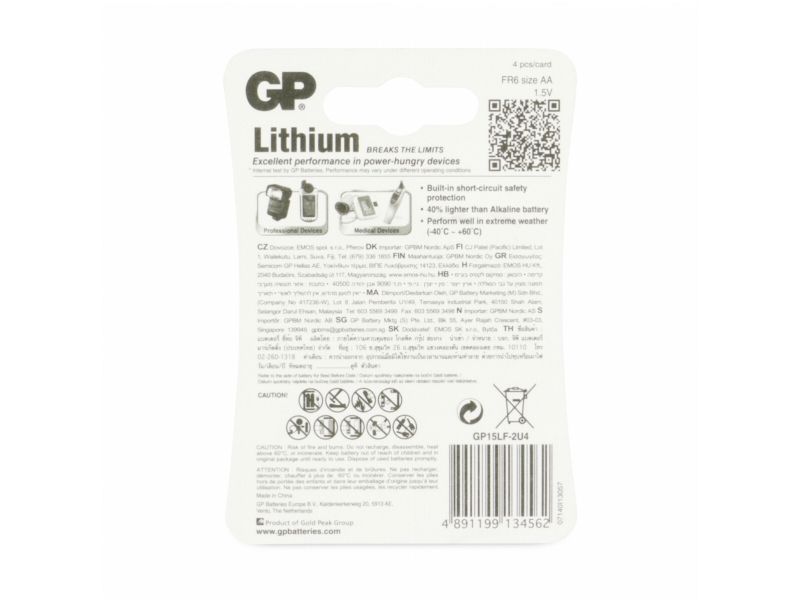 GP Lithium is the most powerful AA battery and delivers the best performance for professional and energy demanding devices. It supplies precise power for medical devices and functions well under extreme weather conditions.