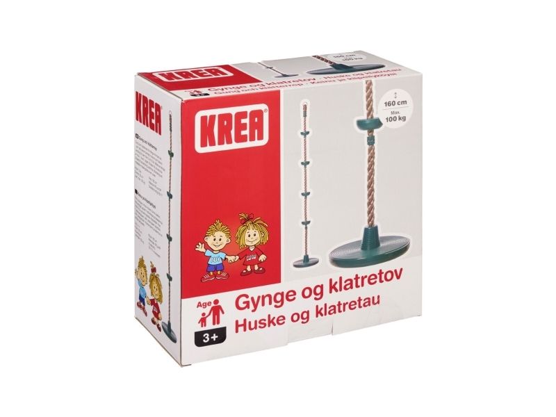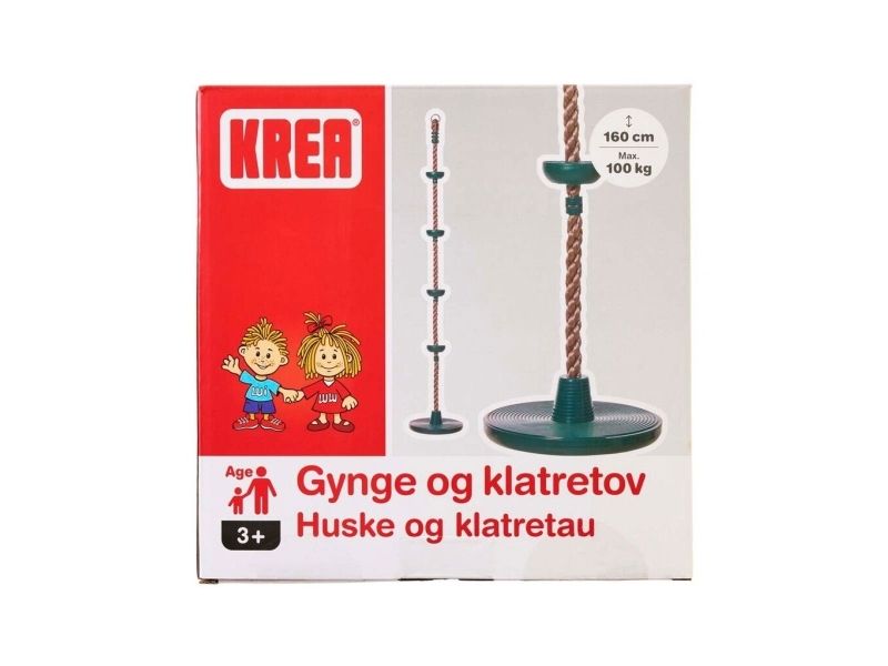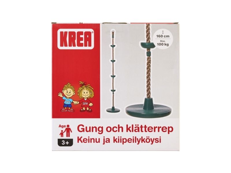 Krea Schaukel und Kletterseil in einem für Kinder, die gerne spielen, sich bewegen und ihre Kraft, ihr Gleichgewicht und ihre motorische Entwicklung herausfordern. Das Seil ist 1,6 m lang und hat einen kleinen Sitz und 4 kleine "Knoten", damit das Kind neben dem Drehen und Schwingen auch das Klettern üben kann. Ab 3 Jahren. Hinweis: Haken zum Aufhängen sind nicht enthalten. Maße: Seil 1,6 m. Sitz Ø: 30 cm. Ab 3 Jahren.