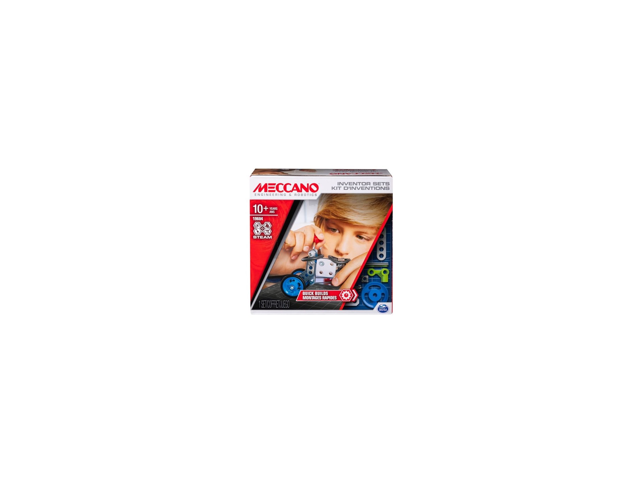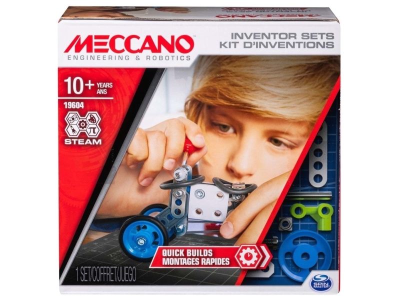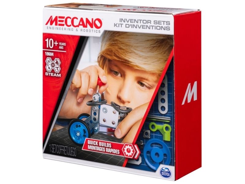 Meccano Quick Build Baukasten mit genügend Teilen, um kleine, unterschiedliche Konstruktionen zu bauen. Der Baukasten wird mit einer Anleitung und zwei doppelseitigen Modellzeichnungen geliefert. Ein wirklich guter Baukasten für Anfänger.