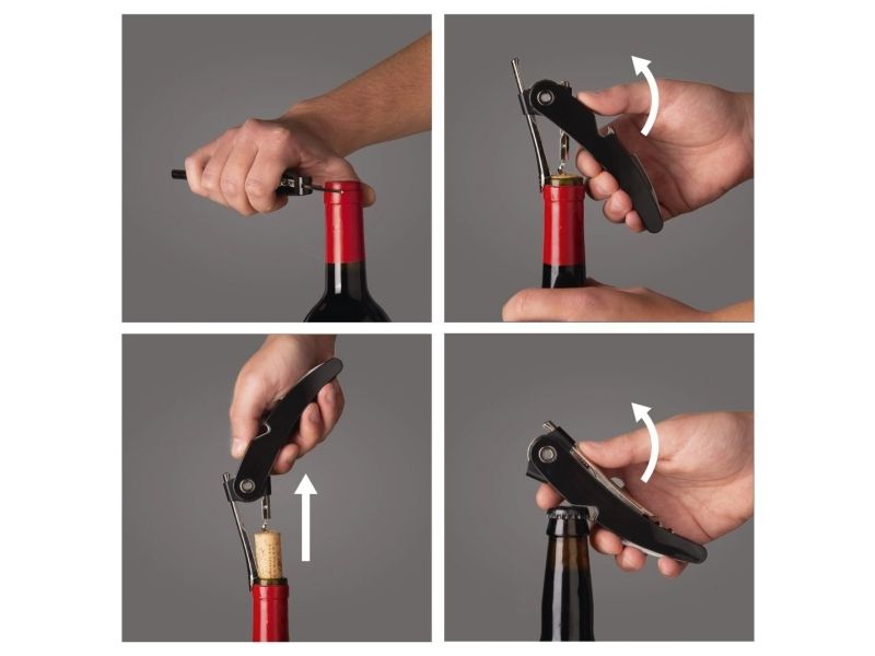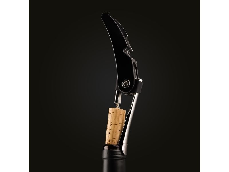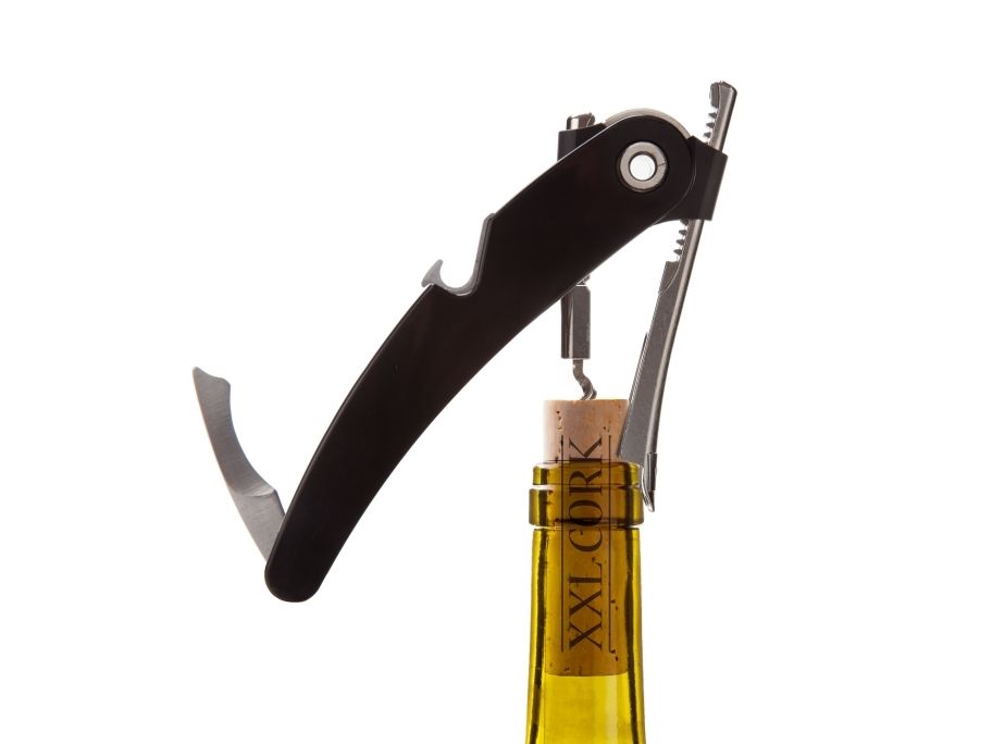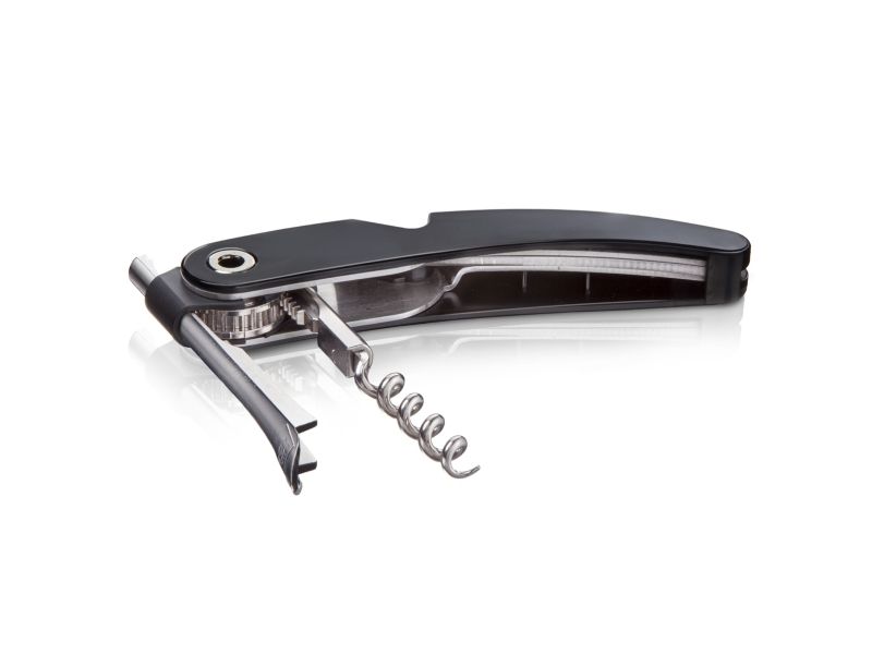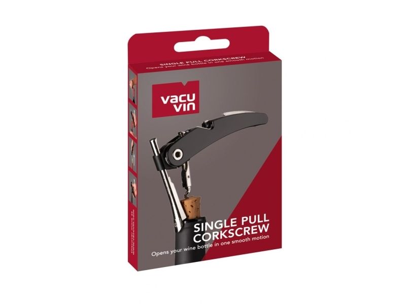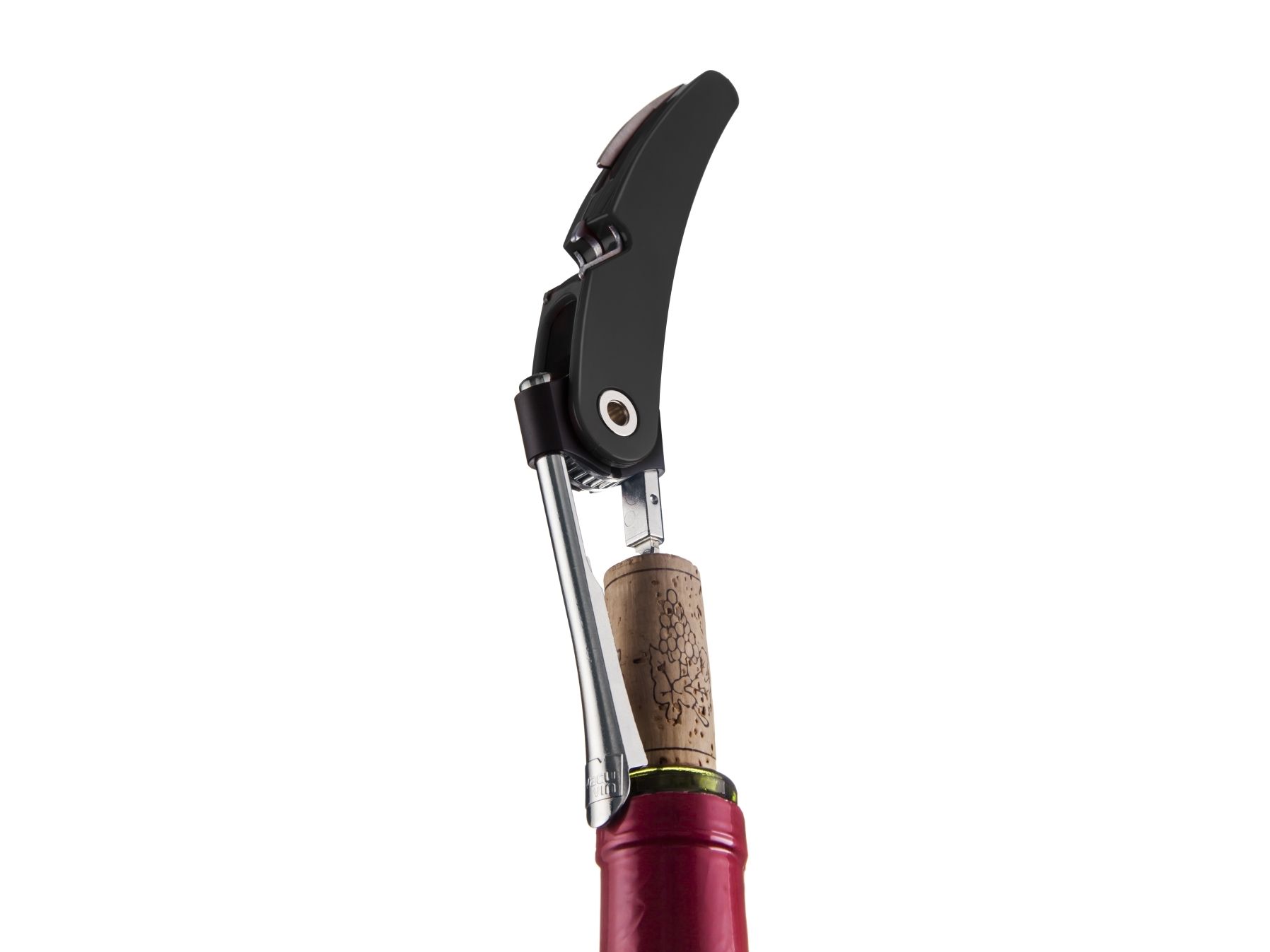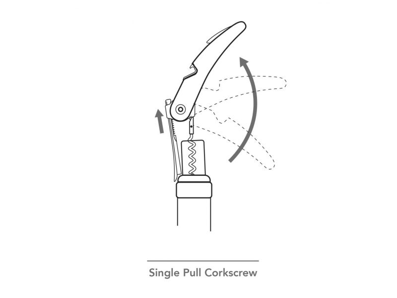 The Single Pull Corkscrew extracts all corks from the bottle in one smooth and perfectly vertical motion. The grip contains a foil cutter and crown cap opener. The unique lever mechanism makes the Single Pull Corkscrew the ultimate corkscrew for wine enthusiasts as well as professionals.