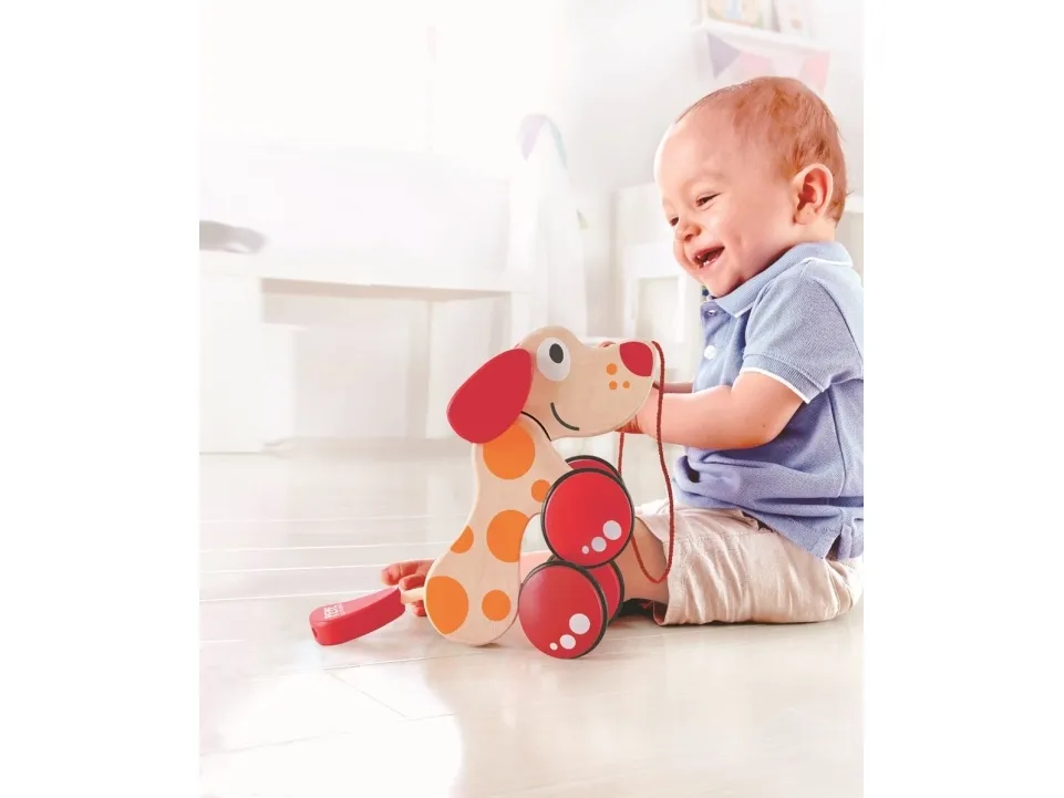 Das kleine Haustier des Kindes mit Leine, damit der Hund treu überall hin folgen kann.