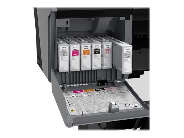 Hohe Qualität dank 12 Farben-Tintensatz Der UltraChrome Pro12-Tintensatz mit K3-Technologie umfasst auch Orange, Grün und Violett und sorgt so für eindrucksvolle Farbgenauigkeit. Der Drucker schaltet automatisch zwischen Photo Black und Matte Black, ohne eine Spülung des Tintensystems. Der SureColor SC-P7500 ist perfekt für professionelle Fotografie und Kunst geeignet sowie für alle, die nach höchster Druckqualität verlangen, um auch die anspruchsvollsten Käufer ihrer Kunstwerke zufriedenzustellen.