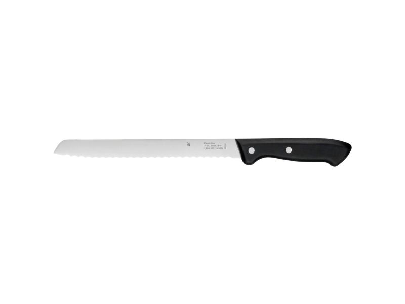 Classic Line is a modern range of knives with a classic shape. The knive blades, made of special blade steel, are given the finishing touches to the final shapening by hand. This guarantees long-lasting sharpness and a cutting edge over the whole length of the blade. The seamless riveted handles are made of high-quality plastic and are completely hygienic. The ideal range of knives for beginners!WMF Bread knife Classic Line. Knife type: Domestic knife, Blade material: Steel