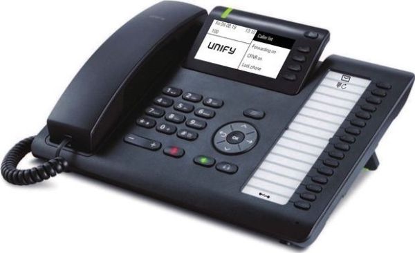 The OpenScape Desk Phone CP400T is considered as the phone for the standard office workplace. The device itself already provides 16 freely programmable function keys with colored LED (green) status indication, three of these keys are pre-assigned with the functions message, redial and disconnect. The paper label reduces the costs and takes into account the customer's request for many keys. The OpenScape Desk Phone CP400T uses the standard Key Modules KM400, which were already introduced with the OpenScape Desk Phone IP portfolio. It can be extended with up to two Key Modules KM400. This gives users direct and quick access to their functions-, name- or linekeys.