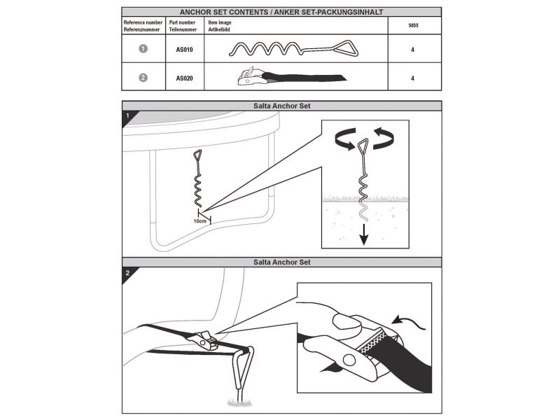Unique in its installation Unlike standard anchor sets, Salta's anchor set is only attached to the underside of the trampoline. This allows the anchor set to be secured to your trampoline safely and unobtrusively. With the anchoring set, your trampoline will not be blown over during a storm! Moreover, it increases stability so the trampoline will no longer move while jumping.