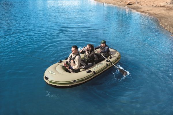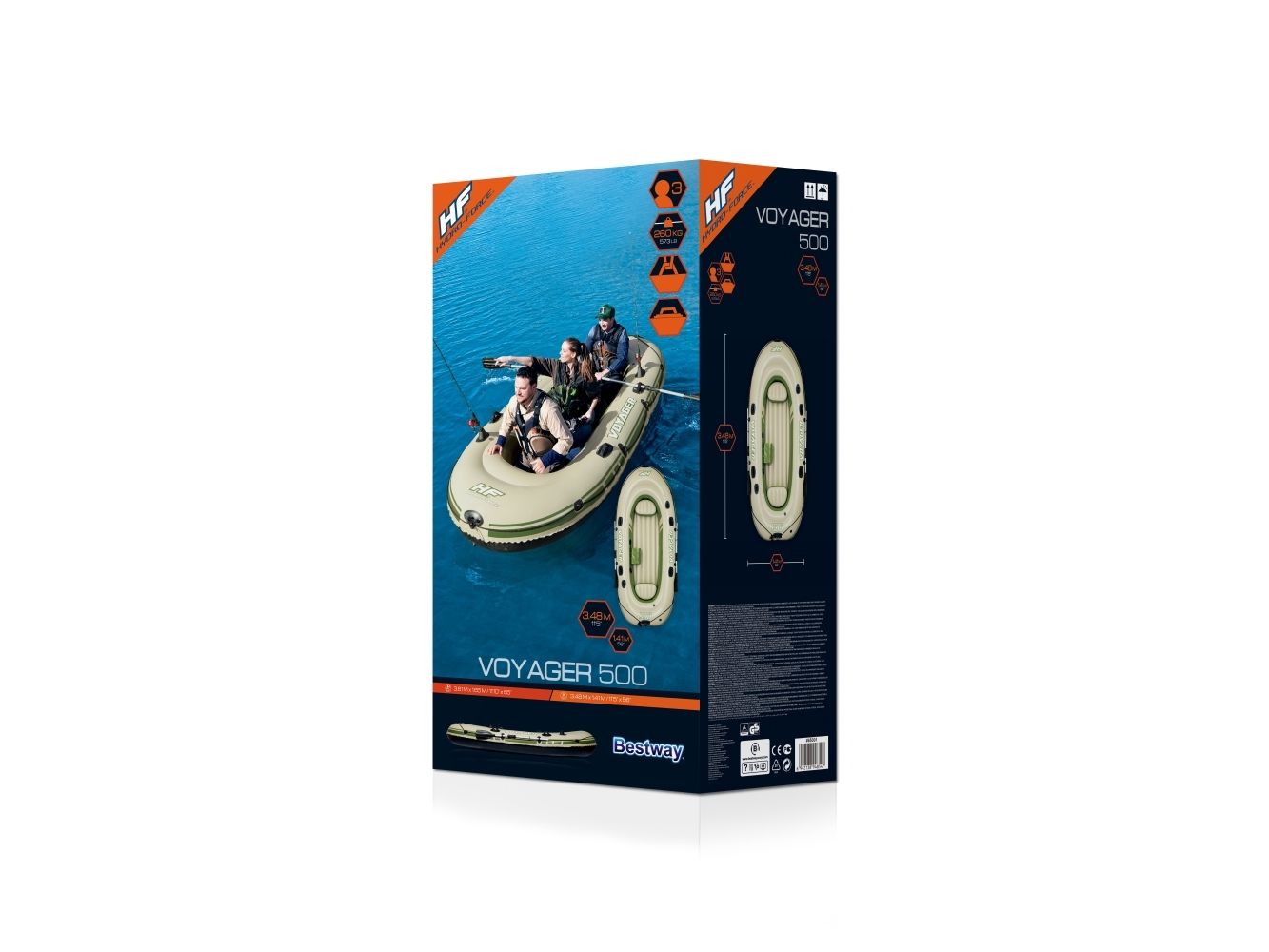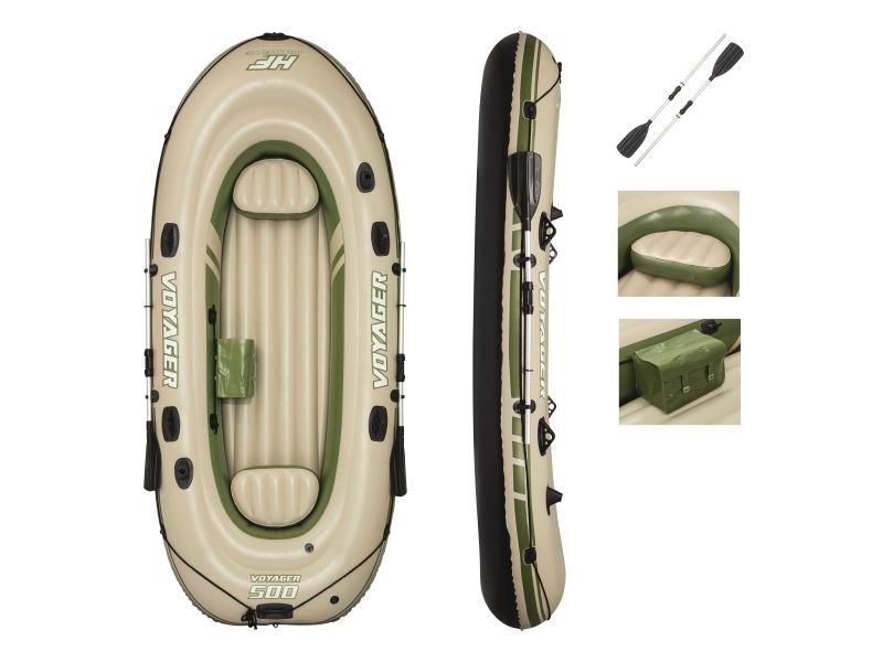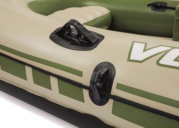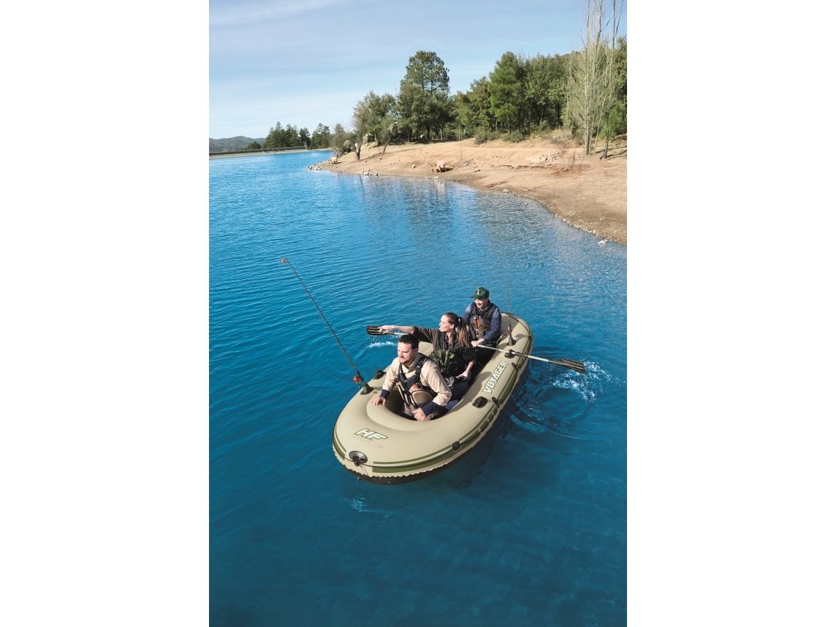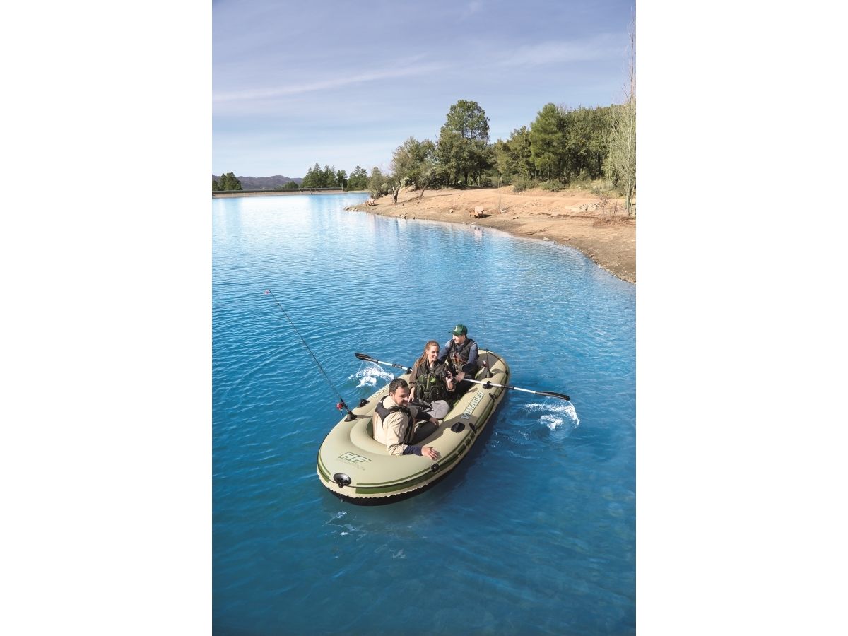 - Größe unaufgeblasen: 3.61m x 1.65m (142” x 65”) - Größe aufgeblasen: 3.48m x 1.41m (137” x 56”) - Schraubventile für schnelles Aufblasen/Luftablassen - Strapazierfähiges, vorgetestetes PVC-Material - Umlaufende Halteleine mit eingebauten Seildurchführungen - Praktischer Stauraum - Aufblasbarer Boden & Sitzpolster für zusätzlichen Komfort - Inklusive Ösen zur Befestigung für - Motorhalterung #62069 und Motoren #65043, #65045 (Motor und Motorhalterung nicht enthalten. Max. Leistung: 1.0 KW /1.4 HP) - Robuste Handgriffe - Integrierte Angelrutenhalterungen - Stabile Ruderdollen, Halteklemmen, Befestigungsring - Inklusive 2 Aluminiumruder (1.45m) # 62064 - Inkl. strapazierfähige Reparaturflicken - Inhalte: Boot, ein Paar Ruder, Reparaturflicken