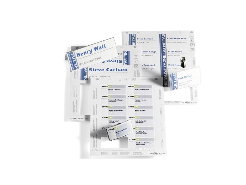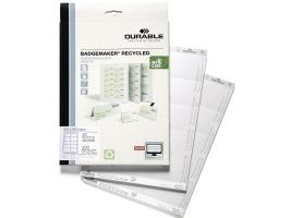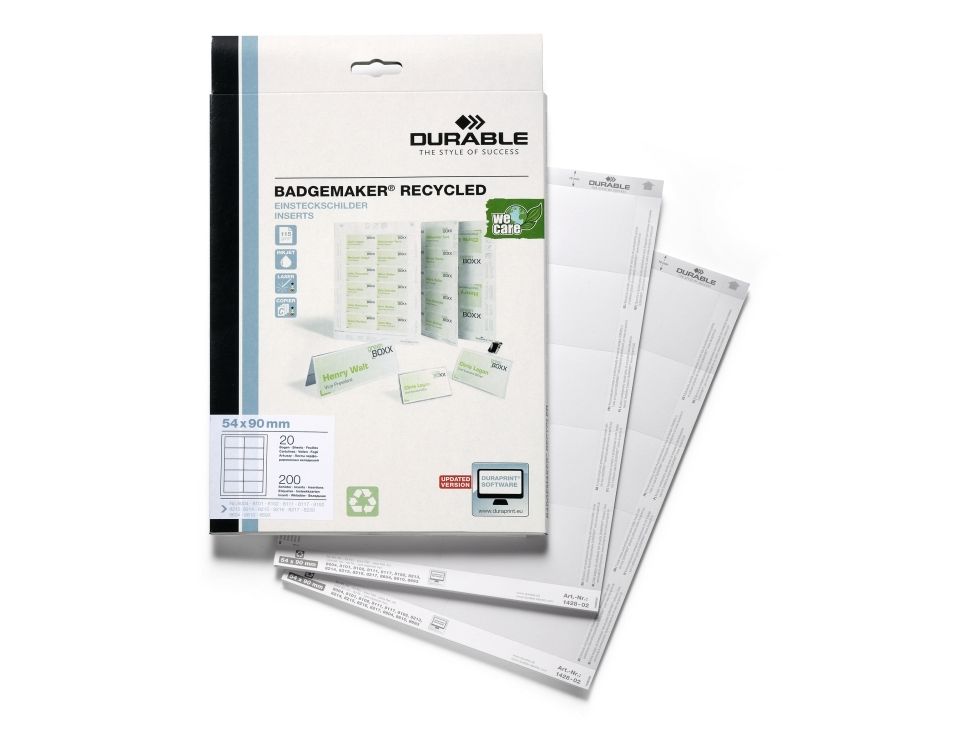 Recycelte Einsteckschilderbogen für DURABLE Namensschilder. Für Art. 8004, 8101, 8102, 8111, 8117, 8182, 8213, 8214, 8215, 8216, 8217, 8230, 8604, 8610, 8693. Inhalt: 200 Schilder. Format: 54 x 90 mm. * Professionelle Beschriftung der BADGEMAKER Einsteckschilder für Namensschilder mit der kostenlosen Software DURAPRINT unter www.duraprint.de
