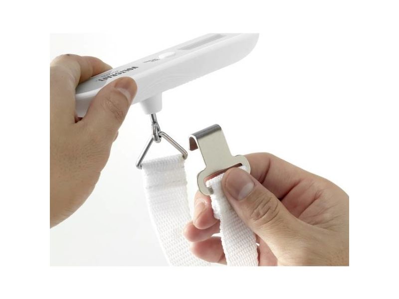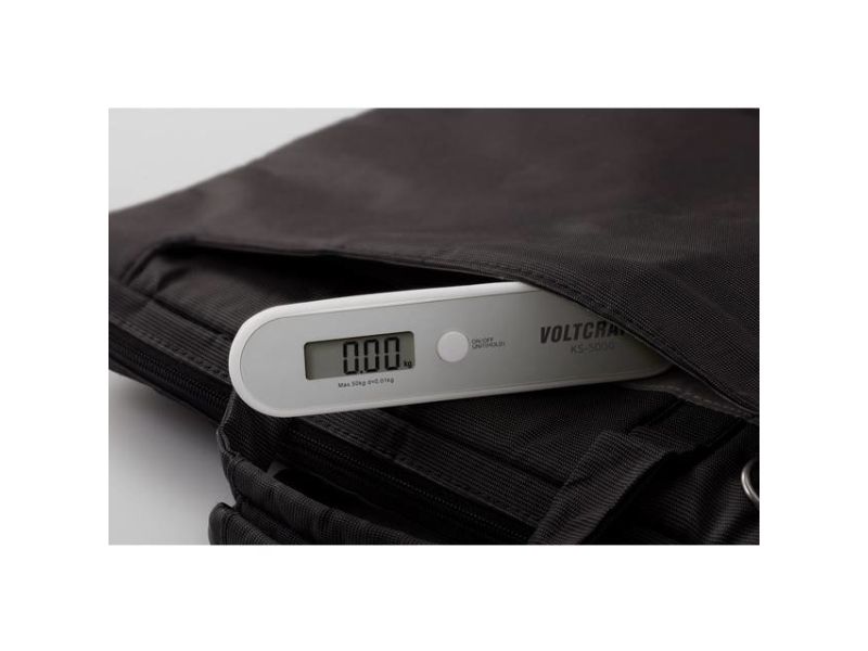 KS-5000-Kofferwaage gewährleistet präzise Messungen von Gepäck. Sie ist klein, leicht zu bedienen und hat eine silikonbeschichtete Oberfläche. Ideal für das Wiegen von Gepäckstücken vor Flügen.