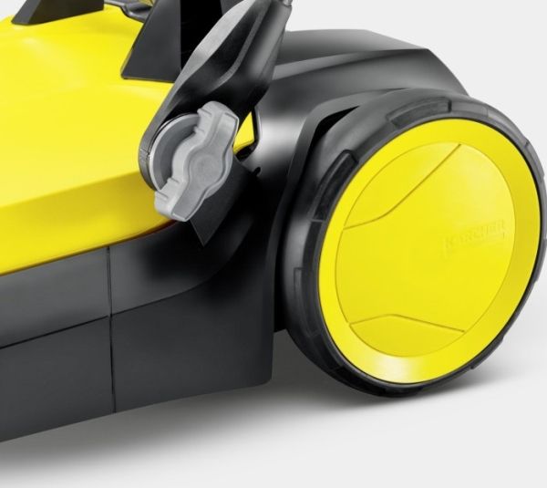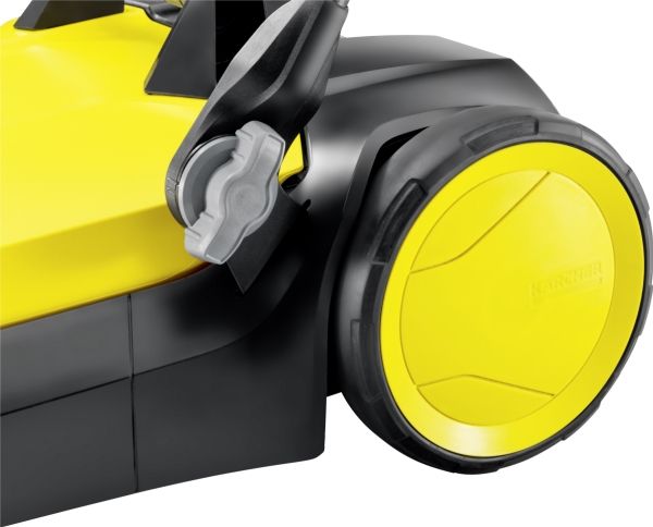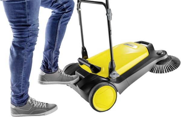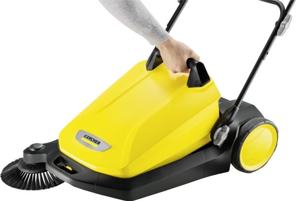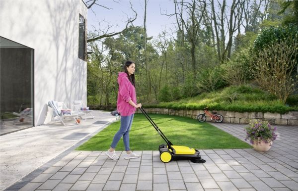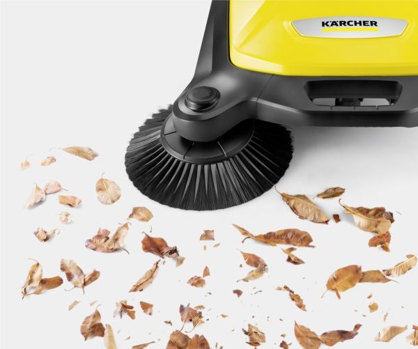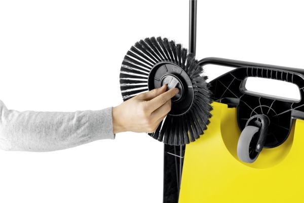 Ob Blütenblätter im Frühling, Sand im Sommer, Laub im Herbst oder Streugut im Winter: Die effektive und ergonomische Kehrmaschine S 4 von Kärcher sorgt ganzjährig in Rekordtempo für glanzvolle Zeiten rund um Haus und Garten. Mit ihrer kräftigen Kehrwalze, ihrem Seitenbesen und einer Kehrbreite von insgesamt 510 Millimetern kehrt sie mühelos Flächen von bis zu 1800 m² pro Stunde. Die Maschine befördert das Kehrgut direkt in den 20 Liter fassenden Kehrbehälter. Die langen Borsten der Seitenbesen sorgen für gründliche Sauberkeit bis zum Rand. Der stufenlos höhenverstellbare Schubbügel lässt sich optimal an die Körpergröße des jeweiligen Anwenders anpassen. Dank des verwendeten Bajonettverschlusses kann bei der Höhenverstellung auch keine Schraube mehr verloren gehen. Die Kehrmaschine kann bei Bedarf ohne Bücken ganz einfach durch eine Trittfläche am Rahmen komplett umgeklappt und am Handgriff getragen werden – für eine platzsparende Aufbewahrung. Einzigartig ist die werkzeuglose Seitenbesenanbringung. So ist die Kehrmaschine im Nu einsatzbereit. Der Kehrgutbehälter lässt sich leicht entnehmen und kann ohne Schmutzkontakt sicher abgestellt und entleert werden.