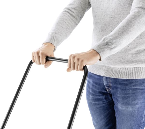 Komfortable Trittfläche Kehrmaschine ohne Bücken komplett umklappen – für die platzsparende Aufbewahrung.