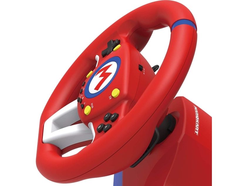 HORI freut sich, die Nintendo Switch Mario Kart Racing Wheel Pro Mini bekannt zu geben, ideal für den Mario Kart und Rennfahrer. Das ergonomische Raddesign, die Pedale und die praktischen Bedienelemente an Bord wurden entwickelt, um eine authentische Rennsimulation zu erstellen. Offiziell lizenziert von Nintendo.