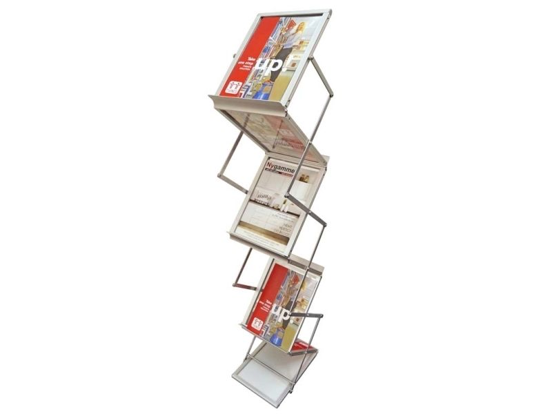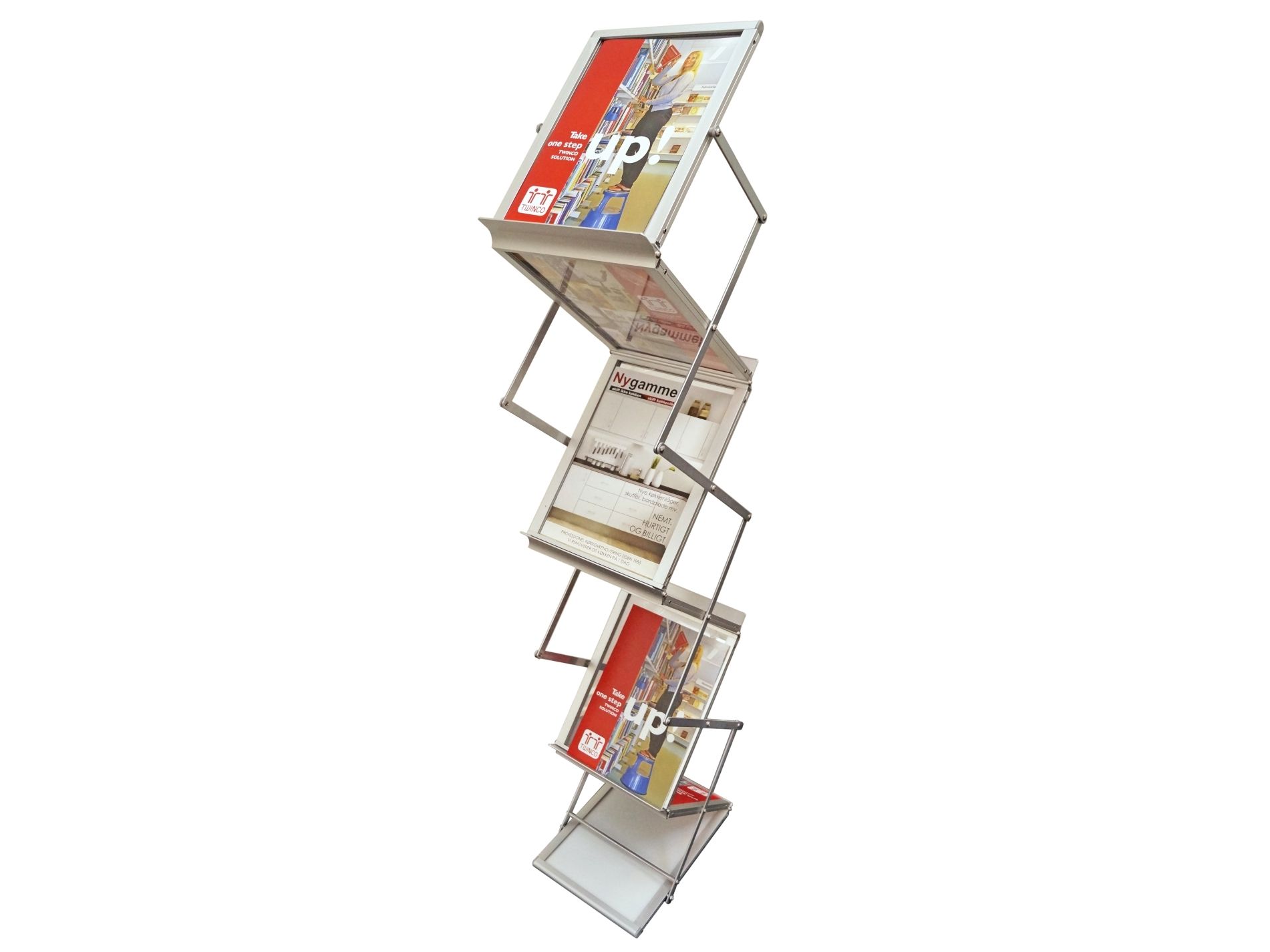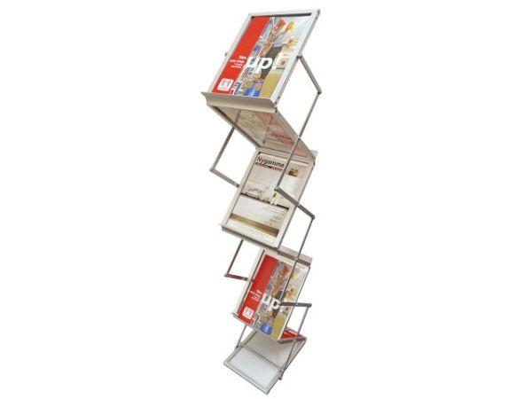 Prospekthalter TWIN Light Z-Shape A4 Standmodell 6 Fächer, silber, gelb