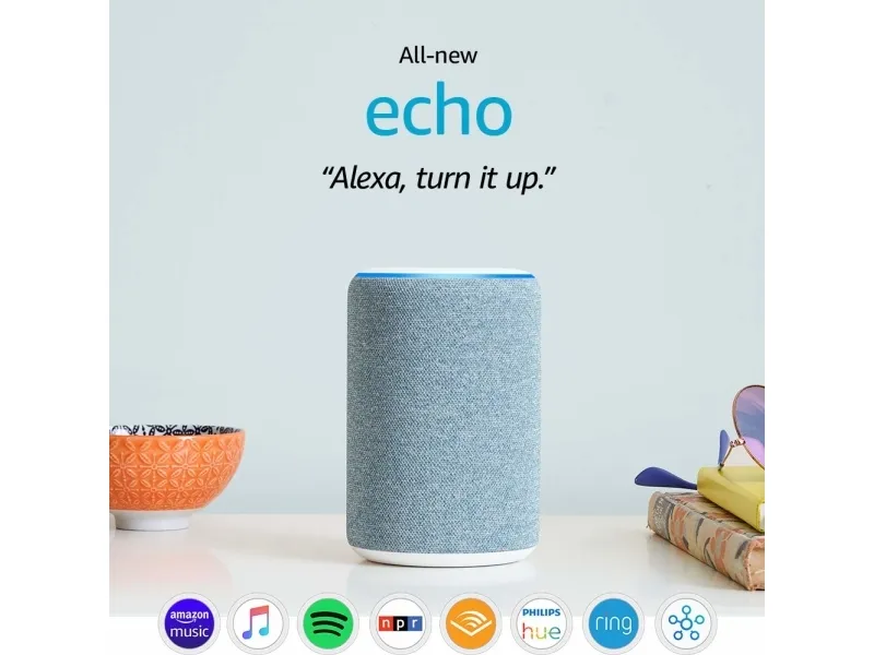 Meet Echo\nAll the benefits of Alexa, now with noticeably improved sound and a new look. Enjoy premium speakers with equalizer controls, and easily set up multiple compatible devices for stereo sound or multi-room music.\n\nAlexa, play top hits\nUse your voice to play a song, artist, or genre through Amazon Music, Apple Music, Spotify, Pandora, and others. With compatible Echo devices in different rooms, you can fill your home with music. Also listen to Audible, podcasts, radio stations, or pair with Fire TV to voice control movies and entertainment.\n\nAlexa is happy to help\nMake your life easier at home. Use your voice to set timers, add items to lists, and create calendar events and reminders. You can also check the news, weather, or traffic. Ask for sports scores, movie showtimes, restaurant hours, or information.\n\nVoice control your smart home\nManage compatible smart home devices using your voice. Switch on the lamp before getting out of bed, turn on the coffee maker on your way to the kitchen, or dim the lights from the couch to watch a movie.\n\nYou can also enable Alexa Guard to get Smart Alerts if your Echo device hears the sound of smoke alarms, carbon monoxide alarms, or glass breaking.\n\nKeep your family in sync\nUse your Alexa devices like an intercom and talk to any room in the house with Drop In and Announcements. Let everyone know dinner is ready, or remind the kids that it’s bedtime. You can also make hands-free calls to almost any number in the United States, Canada, Mexico, and the United Kingdom to stay in touch with family.\n\nAlexa has skills\nWith tens of thousands of skills and counting, Alexa is always getting smarter. Skills are like apps and help you do more, like play relaxing sounds or test your music knowledge. Just say, “Alexa, what are your top skills?”\n\nAlexa for kids\nMake your Echo kid-friendly at no extra charge by enabling Amazon FreeTime in the Alexa app. Automatically filter explicit songs, add approved contacts, set time limits, or review activity with easy-to-use parental controls in the Amazon Parent Dashboard. Children’s privacy is important to Amazon. Learn more about FreeTime on Alexa.\n\nDesigned to protect your privacy\nAlexa and Echo devices are built with multiple layers of privacy protection. For example, Echo has a microphone off button that electronically disconnects the microphones. You also have control over your voice recordings. You can view, hear, or delete them at any time. Learn more.