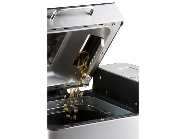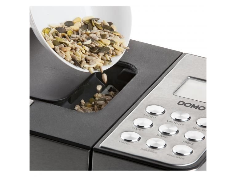 Backen Sie Ihr Brot ganz allein mit der Brotbackmaschine B3971 von DOMO. Schnell und ein-fach mit dem Programm Quick und einer Fertigmischung oder lieber experimentieren und alle Programmzeiten und Zutaten selbst wählen? Wie auch immer: Ihr Brot ist hausgemacht, das schmeckt man! Füllen Sie den Spender mit Früchten, Nüssen, Samen oder anderen Zutaten, dann werden diese zum rechten Zeitpunkt dem Brot beigegeben. Sind Sie glutenintolerant? Backen Sie Ihr eigenes glutenfreies Brot mit dem „glutenfrei“-Programm und dem Rezept aus dem kostenlosen Rezeptheft.