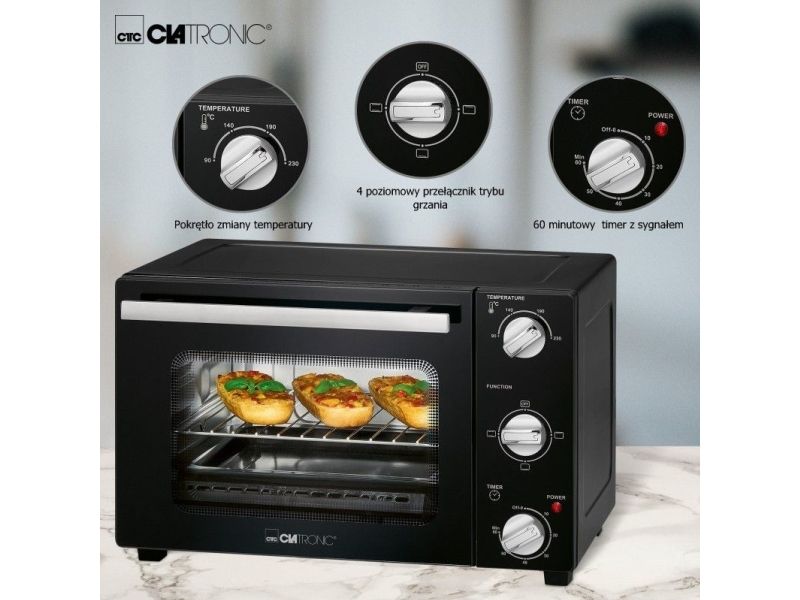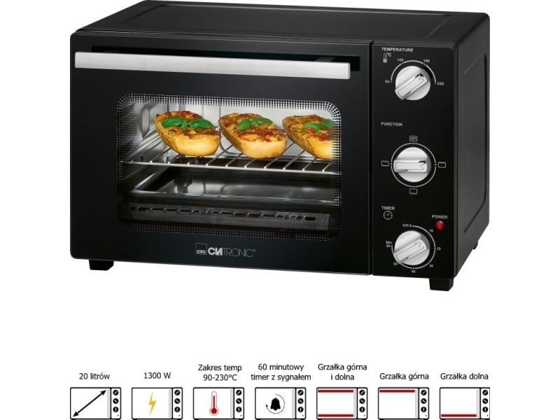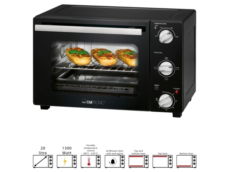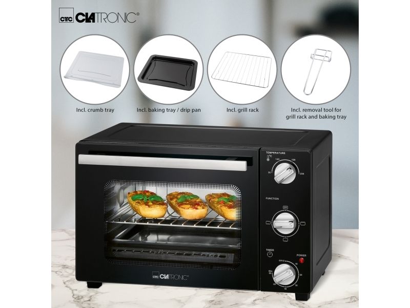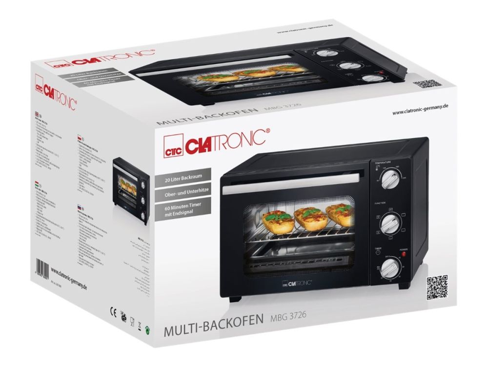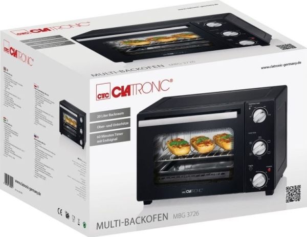 Clatronic MBG 3726. Oven net capacity: 20 L, Product colour: Black, Appliance placement: Freestanding. AC input voltage: 220 - 240 V, AC input frequency: 50 - 60 Hz. Weight: 7.5 kg