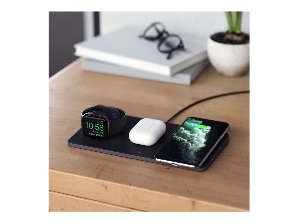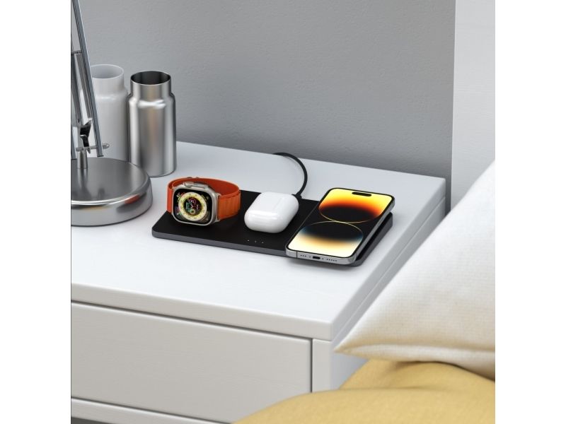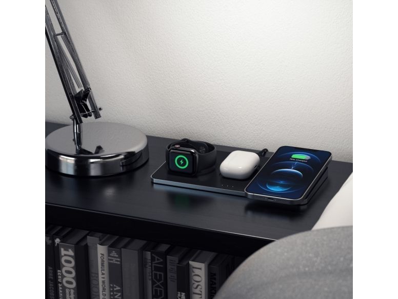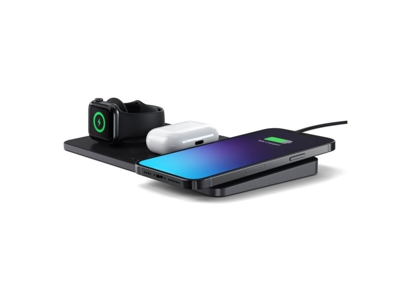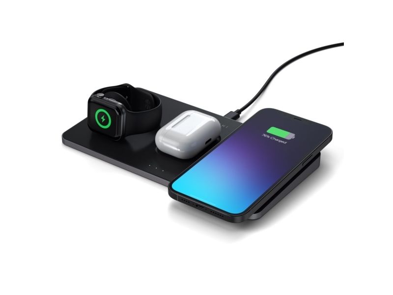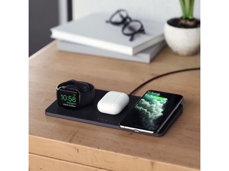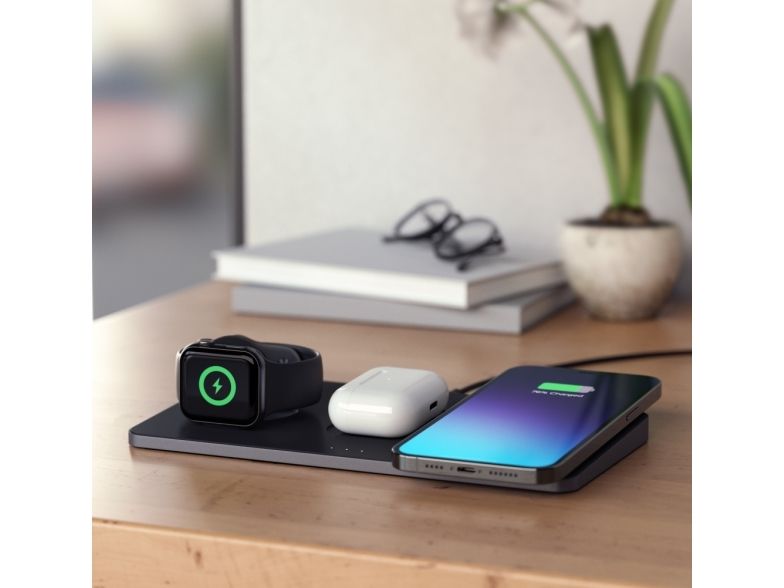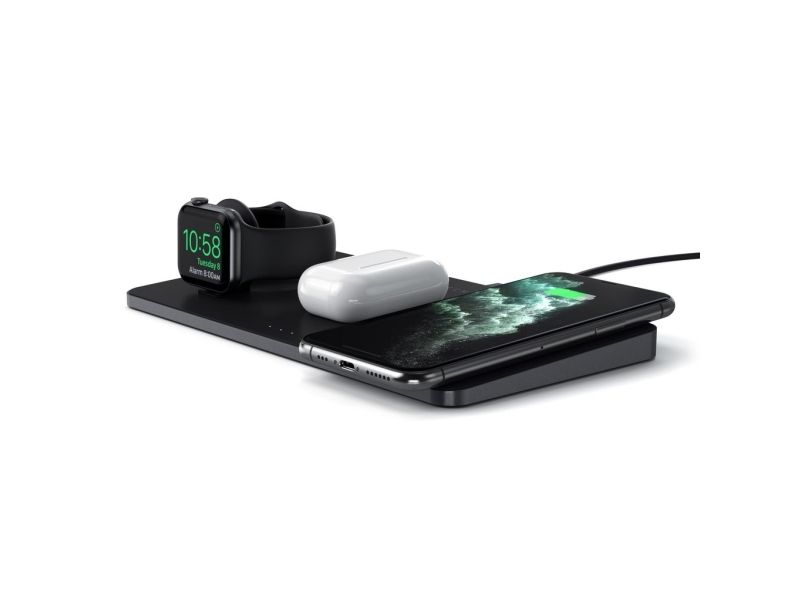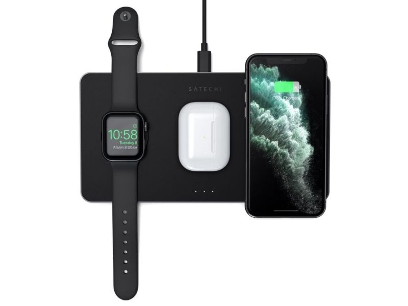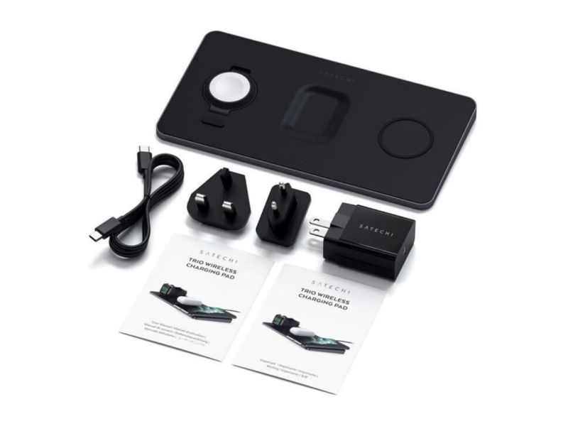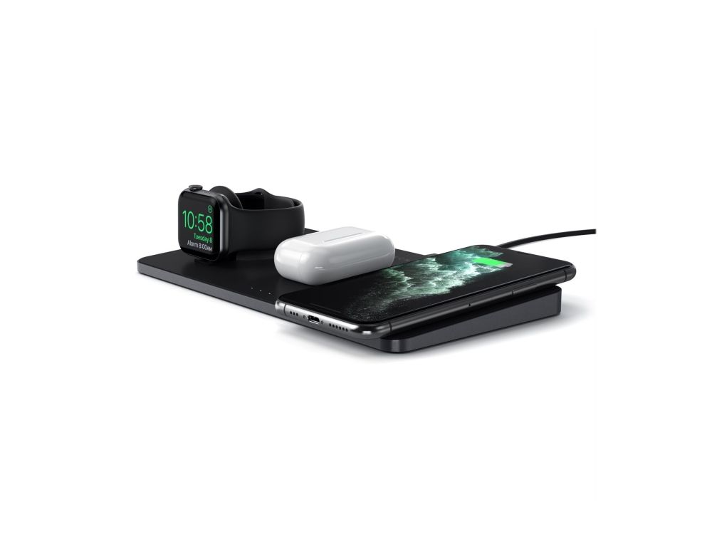 The Satechi Trio Wireless Charging Pad simplifies wireless charging with a convenient place for all your devices - so you'll never be without a charge. With faster-charging technology and intelligent safety features, the Charging Pad quickly powers a Qi-enabled smartphone, Apple Watch, and AirPods Pro all at the same time.