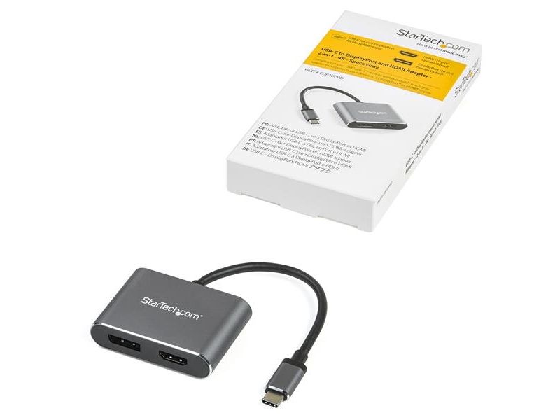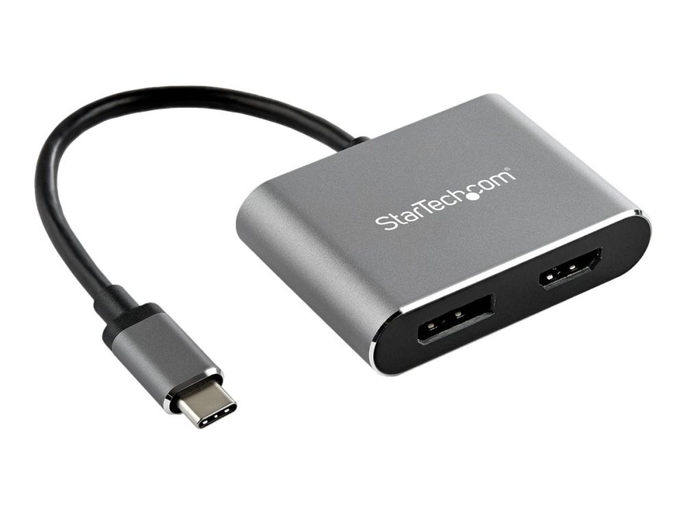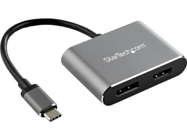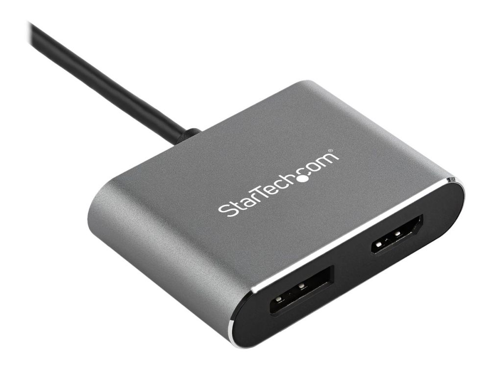 This?USB-C multiport video adapter?offers a portable?solution?for connecting your?USB Type-C?laptop to an?HDMI?or DisplayPort display.?The adapter supports HDR and provides sharper images with enhanced video.