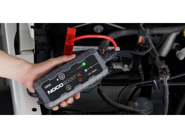The GB50 is an ultra-portable, lightweight and compact lithium-ion jump starter for 12-volt batteries. With it, you can safely jump start a dead battery in seconds - up to 30 times on a single charge. The Boost XL is safe for anyone to use, featuring spark-proof technology, as well as reverse polarity protection. The GB50 lithium jump starter integrates with a high-output 200 lumen LED flashlight with seven light modes, holds its charge for up to one year and features a USB battery pack for recharging personal devices on the go - up to 6 smartphone recharges. Hot and Cold LED indicators of the internal battery determine when your Boost is outside operating temperatures to help protect your batteries and devices. It's rated at 1,500 Amps, and suitable for use on gasoline engines up to 7 liters and up to 4.5 liter diesel engines, such as a car, van, boat, SUV, truck and more. Included with the GB50, the new HD Precision Boost Battery Clamps easily connect to any 12V lead-acid battery from lawn mowers to trucks, USB charging cable, microfiber storage bag, our 1-year hassle-free limited warranty, and free lifetime customer support.NOCO GB50. Output current: 1500 A, Product colour: Black, Grey, Battery technology: Lithium-Ion (Li-Ion). Charging time: 18 h, USB output voltage: 5 V, USB output current: 2.1 A. Master (outer) case width: 342.9 mm, Master (outer) case length: 260.3 mm, Master (outer) case height: 288.9 mm. Width: 86.3 mm, Depth: 218.4 mm, Height: 48.2 mm. Package width: 119.3 mm, Package depth: 99 mm, Package height: 231.1 mm