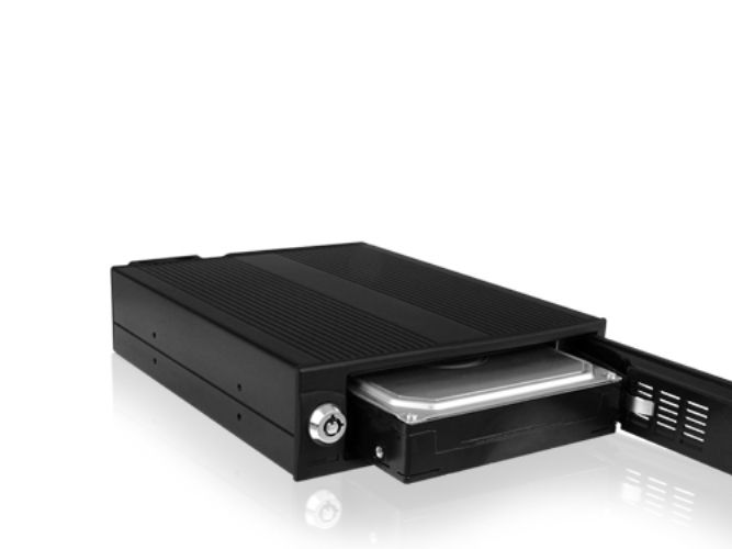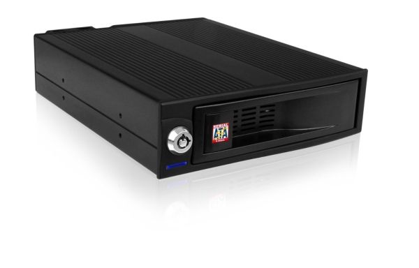 ICY BOX IB-170SK-B, Wechselrahmen, 1x 3,5" SATA I/II/III oder SAS HDD zu 1x SATA Host, EasySwap trägerlos, Alu-Gehäuse, 4cm Lüfter, schwarz, 13,3 cm (5.25"), Speicherlaufwerkbehälter, Schwarz, 3.5", SATA, Serial ATA II, Serial ATA III, 3.5"