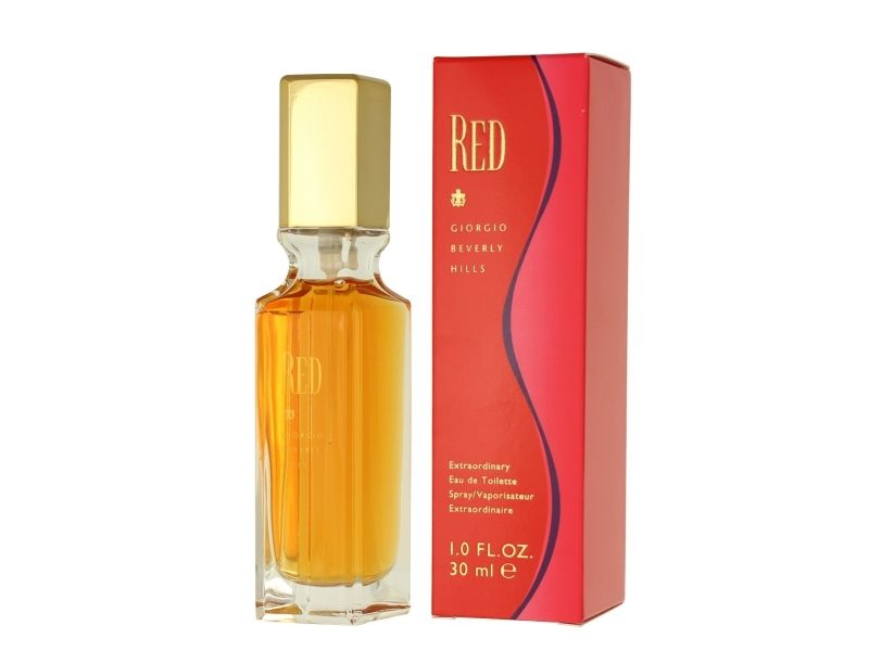 Launched by the design house of Giorgio Beverly Hills in 1989 Red is classified as a sharp woody mossy fragrance This feminine scent possesses a blend of carnation jasmine orange flower marigold rose and peach Accompanied by spicy notes of oakmoss and musk