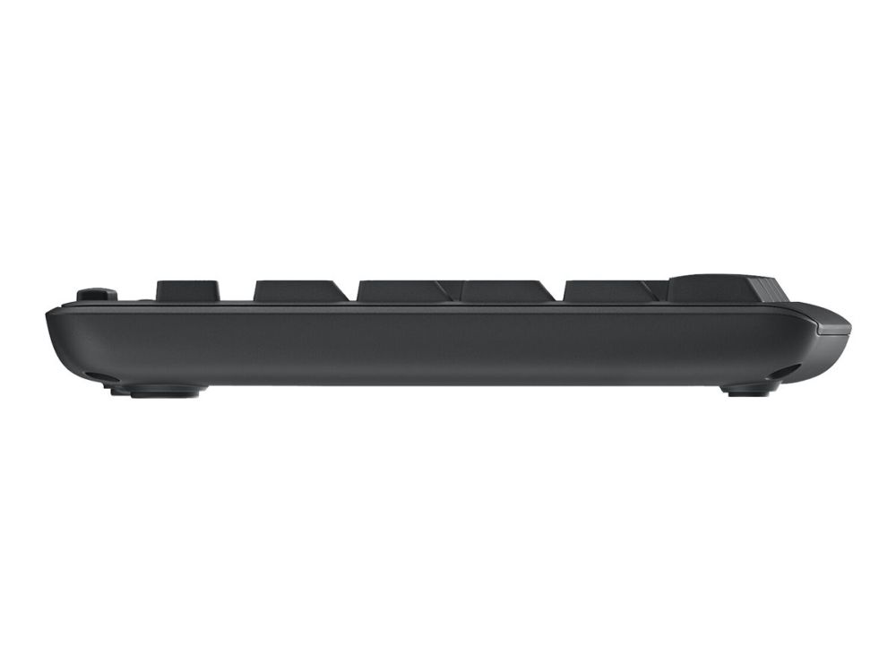 Die starke, verlässliche und kabellose 2.4 GHz Verbindung sorgt für eine stabile und verzögungsfreie Vernetzung. Dank einer Reichweite von zehn Metern und einem Nano USB-Empfänger bleibt dein Schreibtisch vom Kabelwirrwarr befreit und du hast genug Platz für Gaming-Laptop oder Computer. Dieses Tastatur-Maus-Set wurde robust und handlich gestaltet, die ergonomische Form trifft auf ein effizientes Design. Tippen Sie noch länger dank des spritzwassergeschützten Designs mit robusten Tasten. Die stabilen Aufsteller sind für noch mehr Komfort höhenverstellbar. An- und Ausschalter sorgen für eine lange Batterielebensdauer, sodass du länger ohne Batterientausch auskommst – bis zu 36 Monaten bei der Tastatur und 18 Monaten bei der Maus.