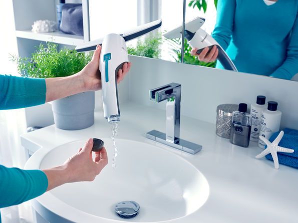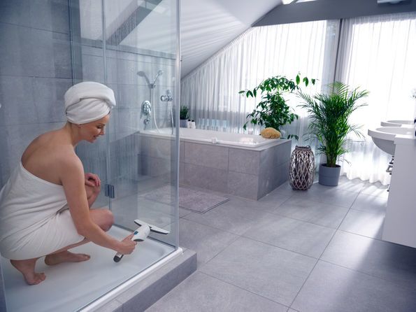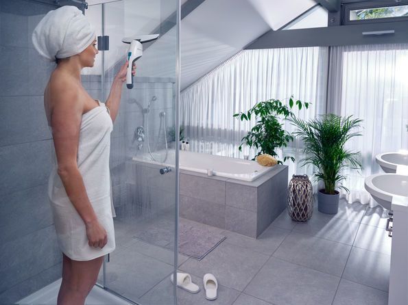 Unschöne Schlieren beim Putzen von Fenstern, Spiegeln oder Fliesen? Wer den praktischen Fenster- und Badsauger Nemo von Leifheit kauft, für den gehört dieses Problem der Vergangenheit an. Denn er verfügt über eine automatische Saugfunktion, die für ein streifenfreies Ergebnis sorgt. Zudem verhindert diese, dass Schmutzwasser herabtropfen kann. So werden glatte Flächen spielend wieder sauber. Selbstverständlich ist der Leifheit Fensterreiniger wasserdicht und kann deshalb griffbereit zum Abziehen in der Dusche aufbewahrt werden. Zudem profitieren diejenigen, die den Fenster- und Badsauger Nemo bestellen, von der extra langen Akku-Laufzeit von 45 Minuten. Denn diese ist ausreichend für eine Reinigung von bis zu 130 m². Der Tank des neuen Leifheit Fenstersaugers ist nun platzsparend in den Griff integriert. Dadurch kann das Absaugen in einem Zug stattfinden, ohne dabei an die Fensterbank anzustoßen. Auch lästiges Nachwischen ist nicht mehr nötig – egal ob die Fliesen abgesaugt, die Fenster geputzt oder die Dusche gereinigt wird. Im Anschluss lässt sich der Tank schnell und unkompliziert über die Öffnung am Griff entleeren. Jetzt Fenster- und Badsauger Nemo von Leifheit kaufen und spielend glatte Oberflächen in neuem Glanz erstrahlen lassen.
