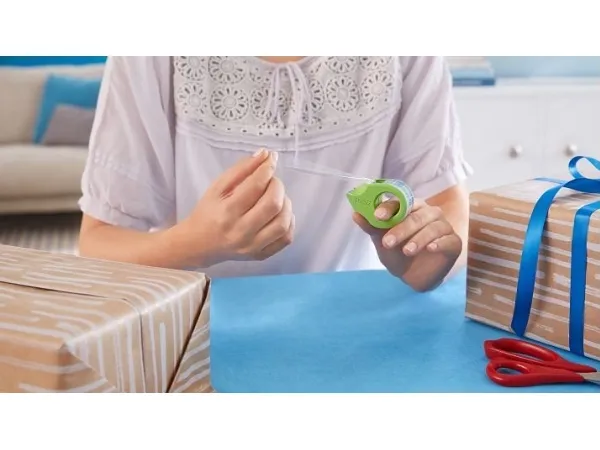 Mit dem tesafilm Mini Abroller ecoLogo® kombiniert tesa® Design, Funktionalität und Umweltfreundlichkeit. Der Mini Abroller ist eine mobile und praktische Lösung, um Klebefilm einfach und freihändig abzuschneiden. Dazu müssen Sie sich den ergonomisch geformten Abroller einfach auf einen Finger stecken und können mit der Arbeit beginnen. Das scharfe Wellenmesser sorgt für einen sauberen Schnitt und erleichtert die Benutzung zusätzlich. Durch das bequeme Abrollen und Schneiden verpacken Sie selbst „Geschenkeberge“ in Rekordzeit.