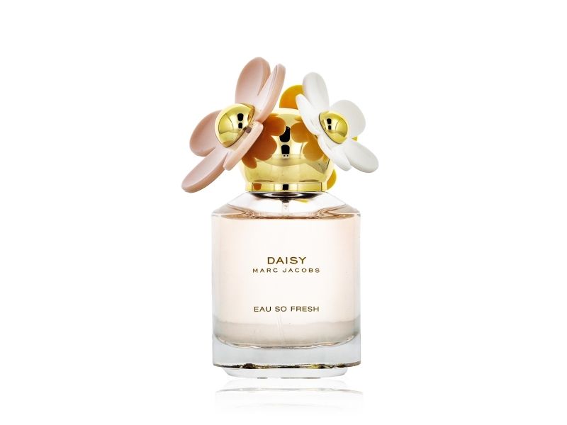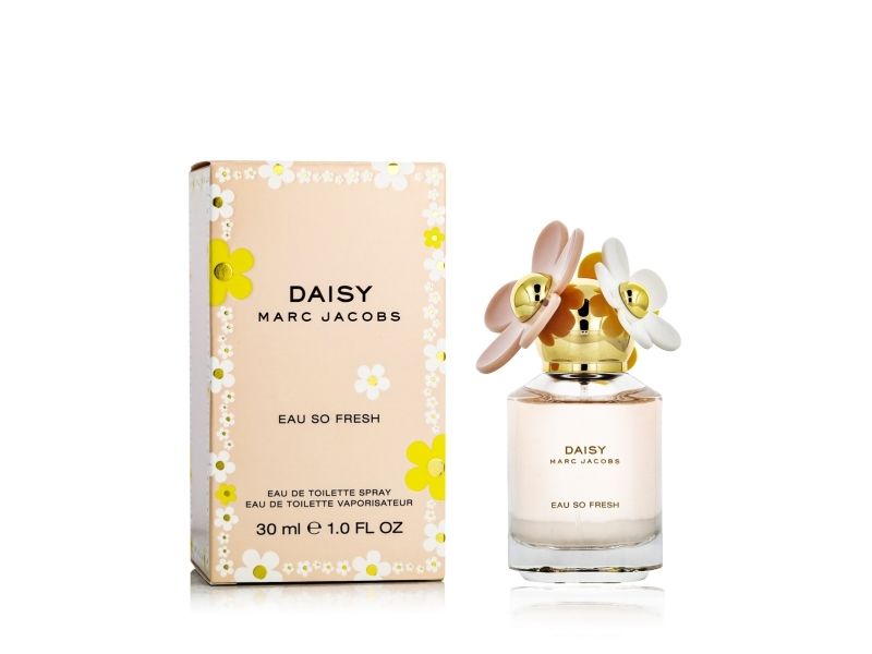 Daisy Eau So Fresh van Marc Jacobs is een bloemige fruitige geur voor dames De topnoten zijn Groene noten Framboos Peer en grapefruit De hartnoten Viooltje Lychees Appelbloesem Roos en Jasmijn De basisnoten Zijn Muskus Pruim en Ceder uit Virginia Deze geur werd uitgebracht in 2011