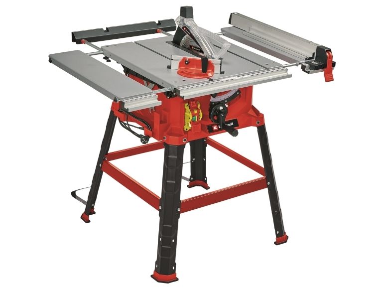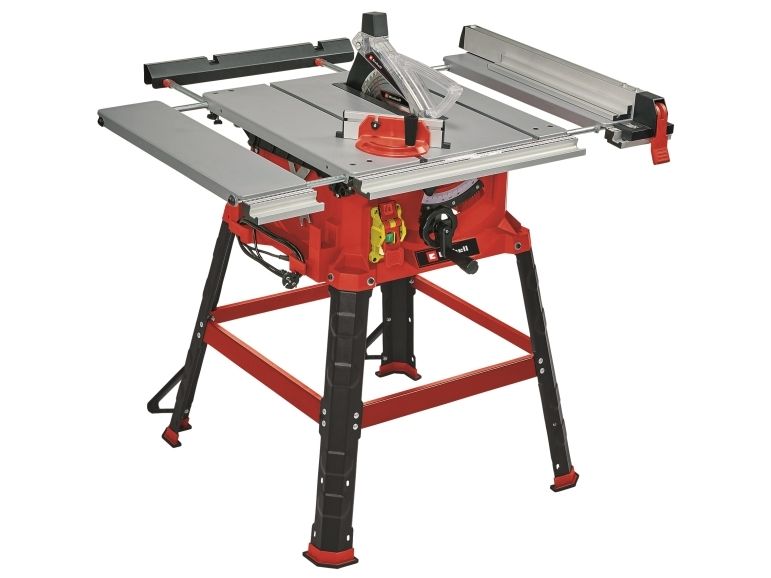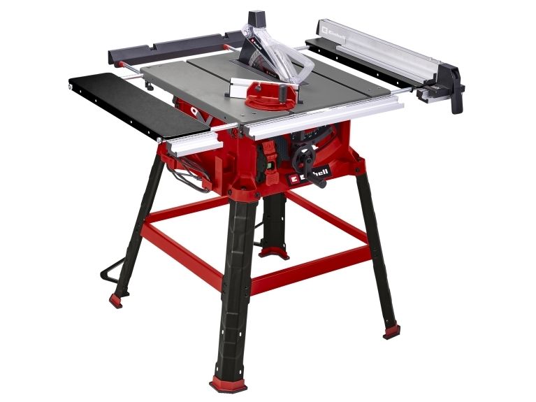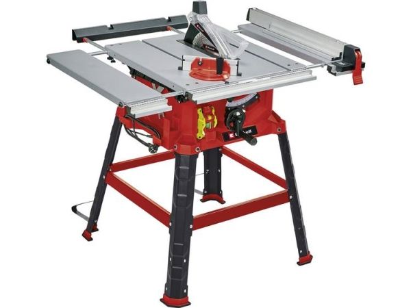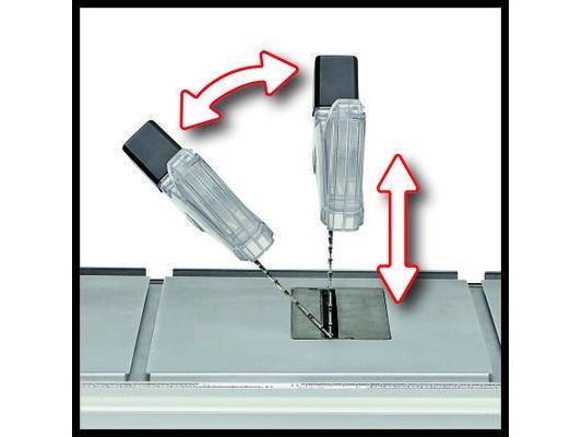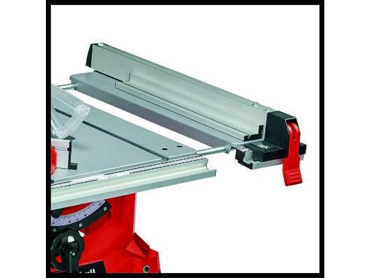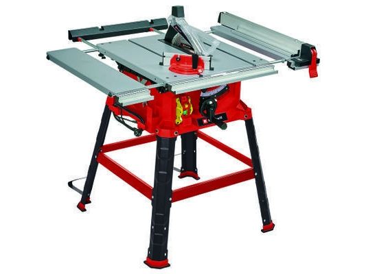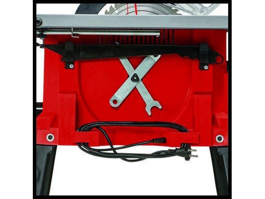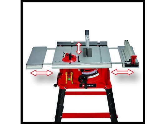 The Einhell TC-TS 2225 U bench-type circular saw is a high-performance tool for performing precise and flexible work. The sturdy parallel stop with clamps on both sides enables longitudinal cuts to be performed, and for effortless angle cuts the angle stop or the tilting saw blade can be used. If a larger support surface is needed, there are pull-out side tables and a length extension at the back. The powerful motor is designed to handle major jobs as well, and it has an integrated soft start function for protecting both it and the fuses. Holders on the housing are practical features for holding the supplied stops and tools, the push stick and the power cable.
