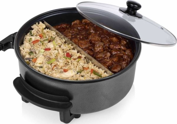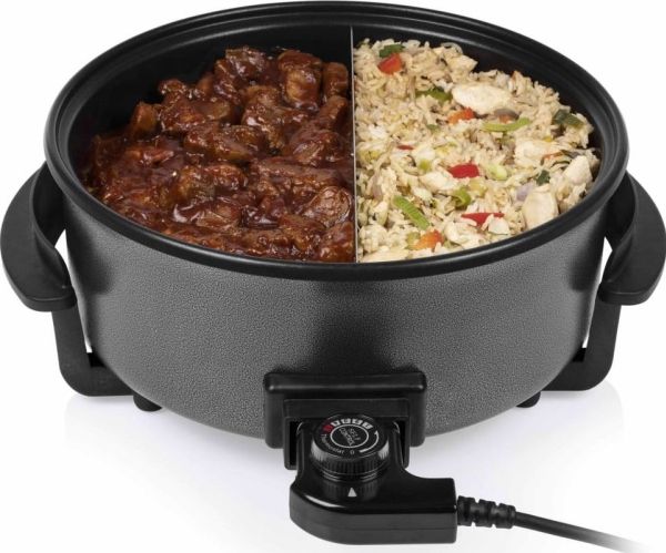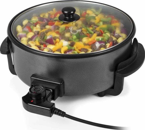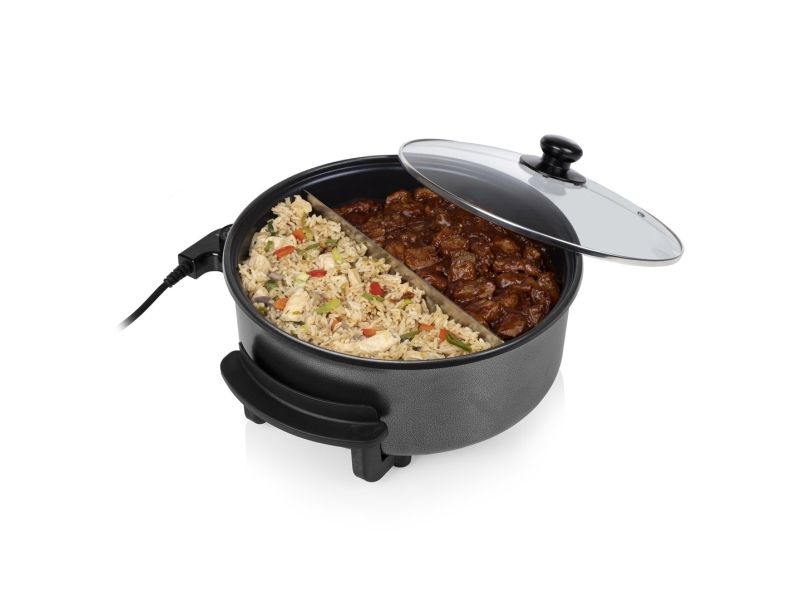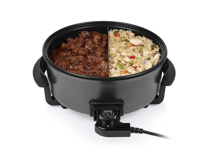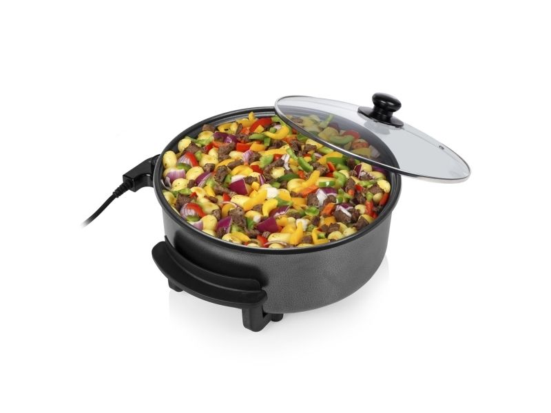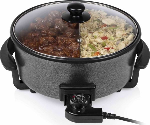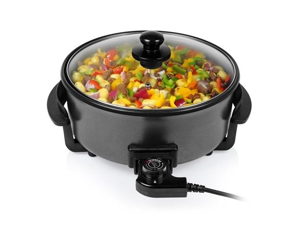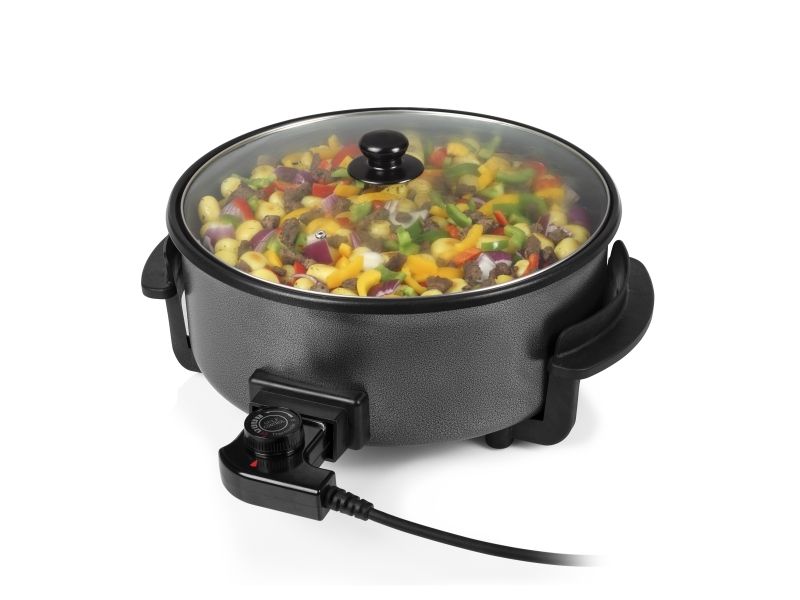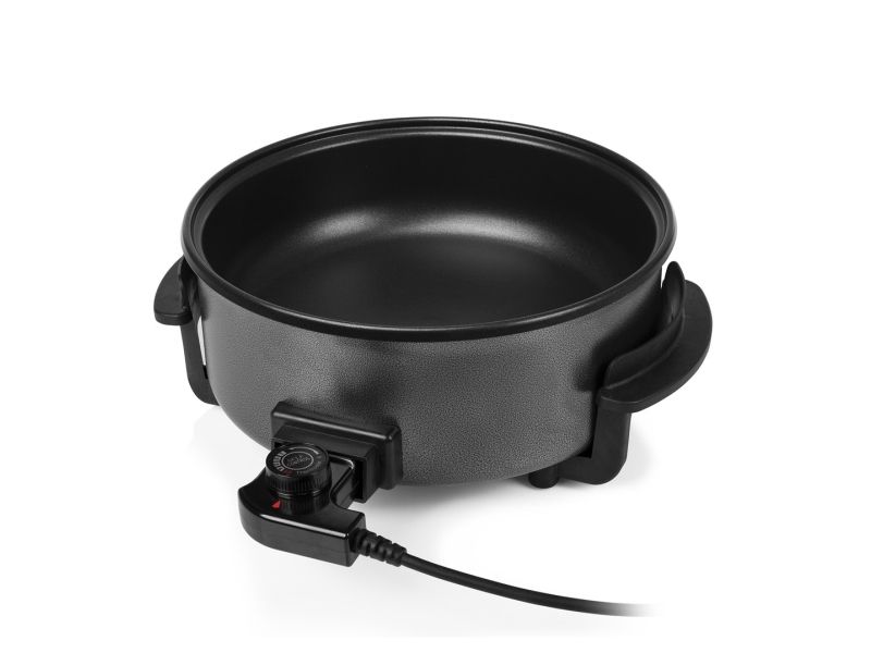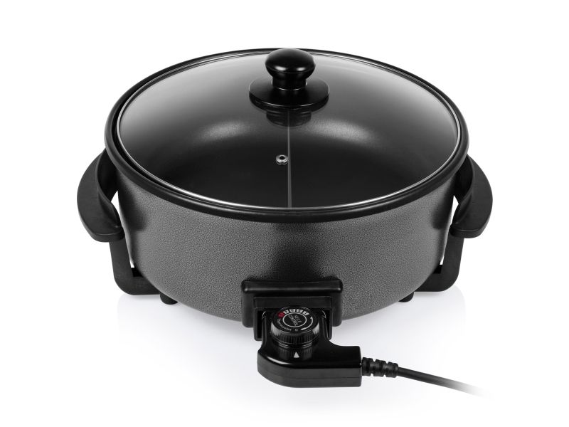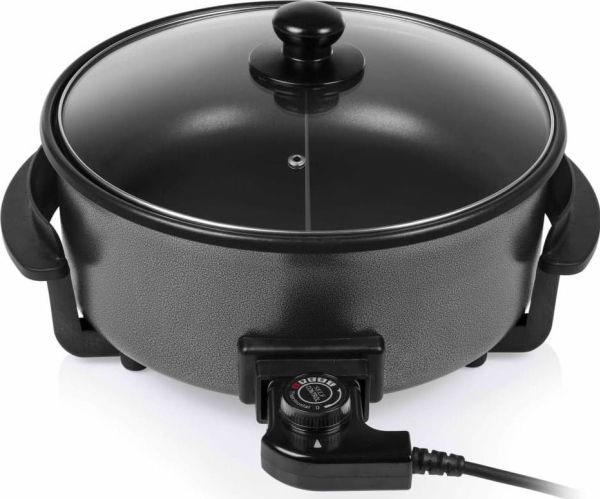 Diese multifunktionale Pfanne hat ein großes Fassungsvermögen, mit 30 cm ? und einer Höhe von 9 cm. Die gewünschte Temperatur kann per Thermostat eingestellt werden. Das mitgelieferte Zubehör teilt die Backfläche problemlos in 2 Fächer.