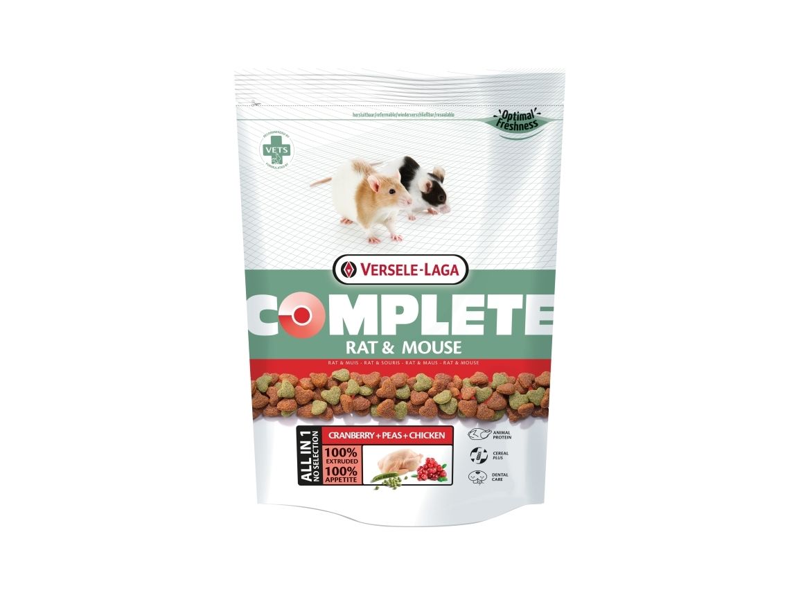 Versele-Laga Complete Råtta & Mus är ett läckert allt-i-ett-foder i pelletsform för råttor och möss. Det tillhandahåller alla nödvändiga näringsämnen för en balanserad kost och välbefinnande. Med aptitlig kycklingprotein, spannmål, linfrö och vitaminer främjas en god matsmältning, pälskvalitet och ett starkt immunförsvar. Pelletsens struktur bidrar även till tandhälsa. Ge din råtta eller mus det bästa med Versele-Laga Complete Råtta & Mus för ett liv fullt av vitalitet och välmående. För en råtta och en mus rekommenderas en genomsnittlig daglig portion på ca 15g mat.