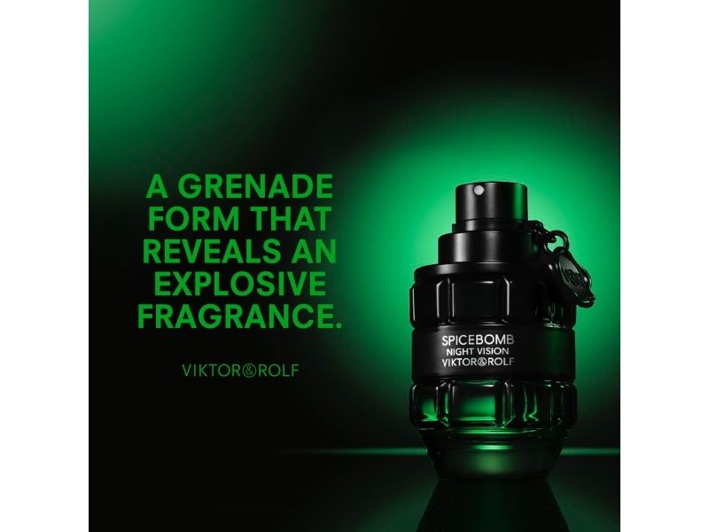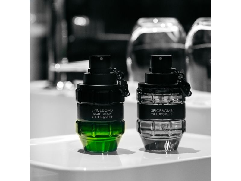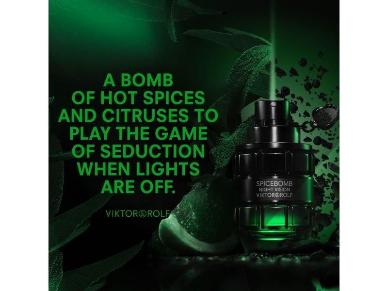 Released in 2019 Spicebomb Night Vision from Viktor Rolf is the perfect evening cologne This masculine fragrance opens with light and refreshing top notes of green mandarin grapefruit granny smith apple and cardamom A blend of spicy and floral heart notes complements this freshness while adding heat and depth