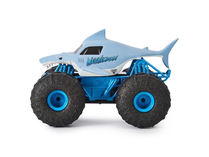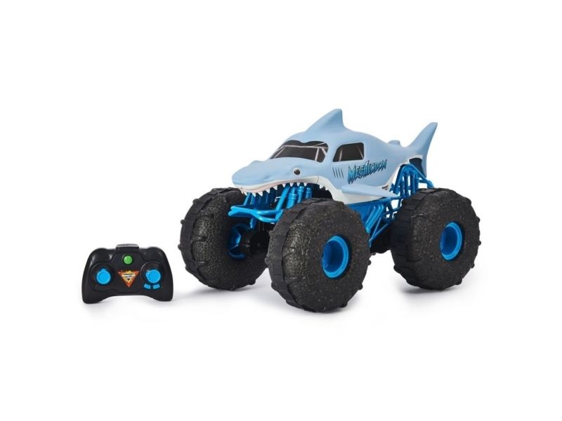 Haie sind der Hammer! Freu dich auf stundenlange Action mit dem Megalodon Storm RC von Monster Jam! Diese wilde Maschine meistert jedes raue, nasse und schroffe Terrain! Dreck, Felsen, Schnee, Gras - sogar Wasser! Der Megalodon ist unaufhaltsam und überwindet jedes Hindernis. Er ist eine Miniaturkopie des echten Megalodon, mega cool!
