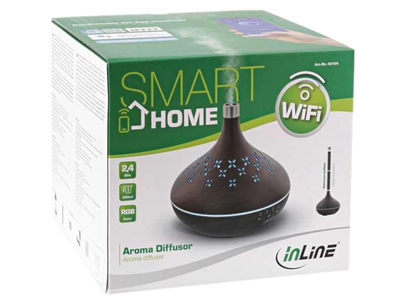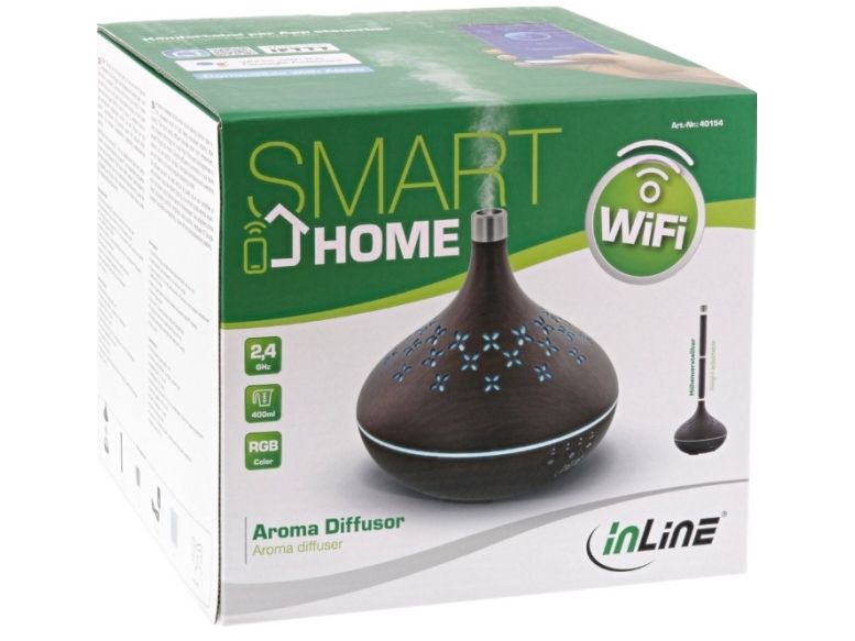 Stellen Sie sich vor, die Haustür geht auf, und es kommt Ihnen ein angenehmer Duft entgegen oder Essensgerüche werden gleich nach dem Kochen neutralisiert. Der Aroma Diffusor von InLine sorgt für smarte Raumerfrischung und nutzt dabei Ultraschalltechnologie, um den kühlen Nebel des bevorzugten Duftöls in Ihrem Zuhause zu verteilen. Einmal in das Heimnetzwerk eingebunden, können Sie den Diffusor per App steuern. Automatismen und Szenarien lassen sich darüber intuitiv erstellen und vermeiden beispielsweise regelmäßig wiederkehrende Gerüche. Der Diffusor kann auch ohne Öl - rein als Luftbefeuchter oder ohne Dampfausstoß - als indirekte Beleuchtung dienen. Für ein dezenteres Aromaerlebnis kann der Dampfausstoß in drei Stufen variiert werden. Zwei Adapter für die Höhenverstellbarkeit sowie die vereinfachte Sprachsteuerung, dank der Kompatibilität zum Google Home Assistenten und Amazon Alexa, runden die umfassende Bedienbarkeit ab.
